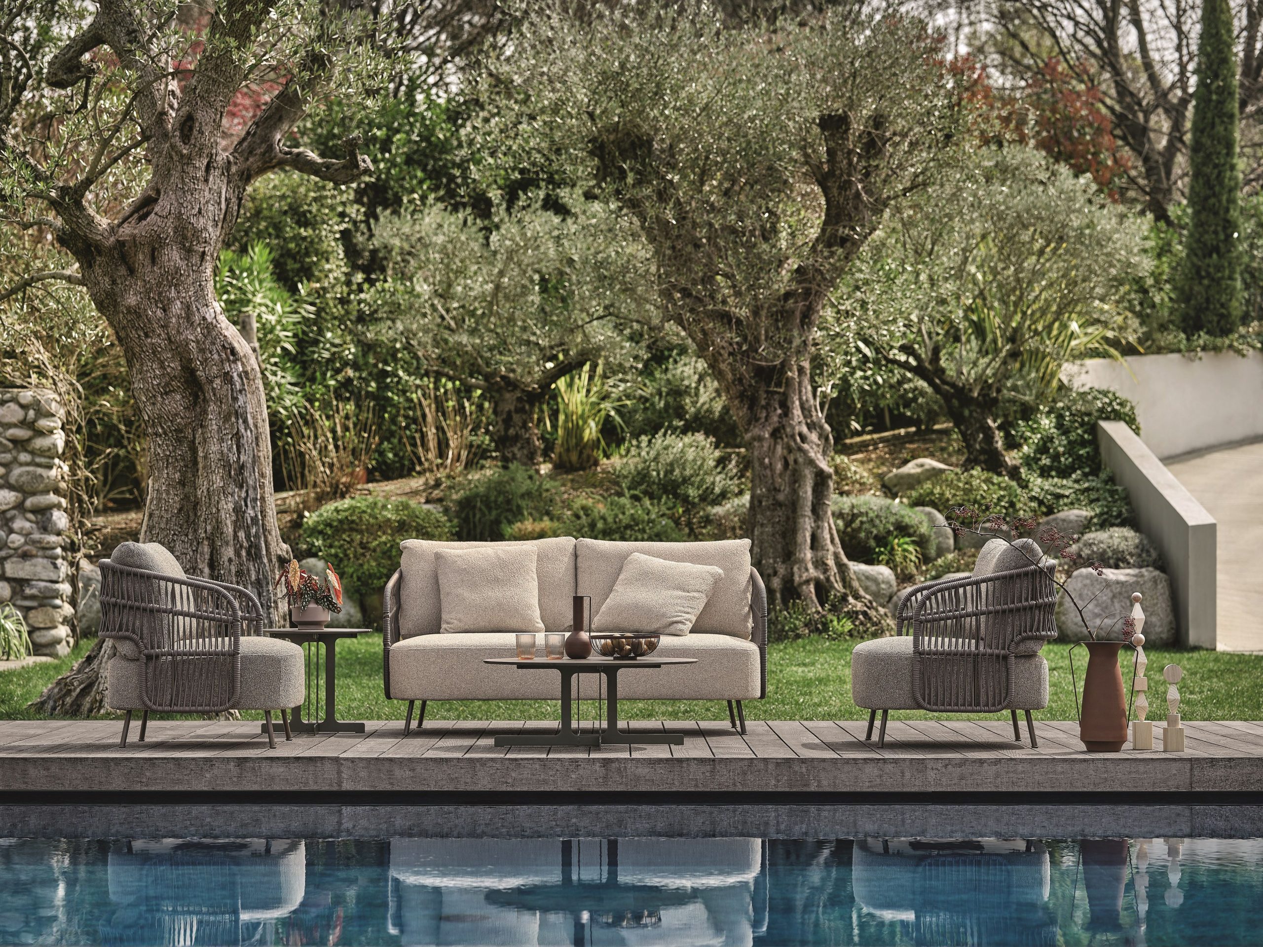 The 356 Outdoor family of products designed by Daniele Lo Scalzo Moscheri interprets the design of the chair bearing the same name with special backrests featuring an enveloping aesthetic that surrounds the perimeter of the seat. The 356 Outdoor collection consists of the Lounge, Sofa, and Daybed versions. A tubular metal back frame becomes the load-bearing structure, but also a recognisable aesthetic sign that presents two variants: the first houses a manual weave that unfolds with a vertical mesh, and the second is upholstered with quilting, using a particular and innovative laying system. The 356 is a linear seating collection that conveys manual skills and rich workmanship; it is designed as a bridge between technology and tradition in absolute keeping with the language of the Ditre Italia brand.