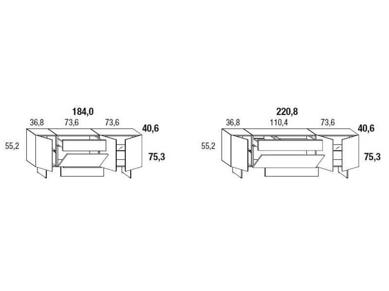 W 184,0/220,8 x D 40,6 x H 75,3 cm |