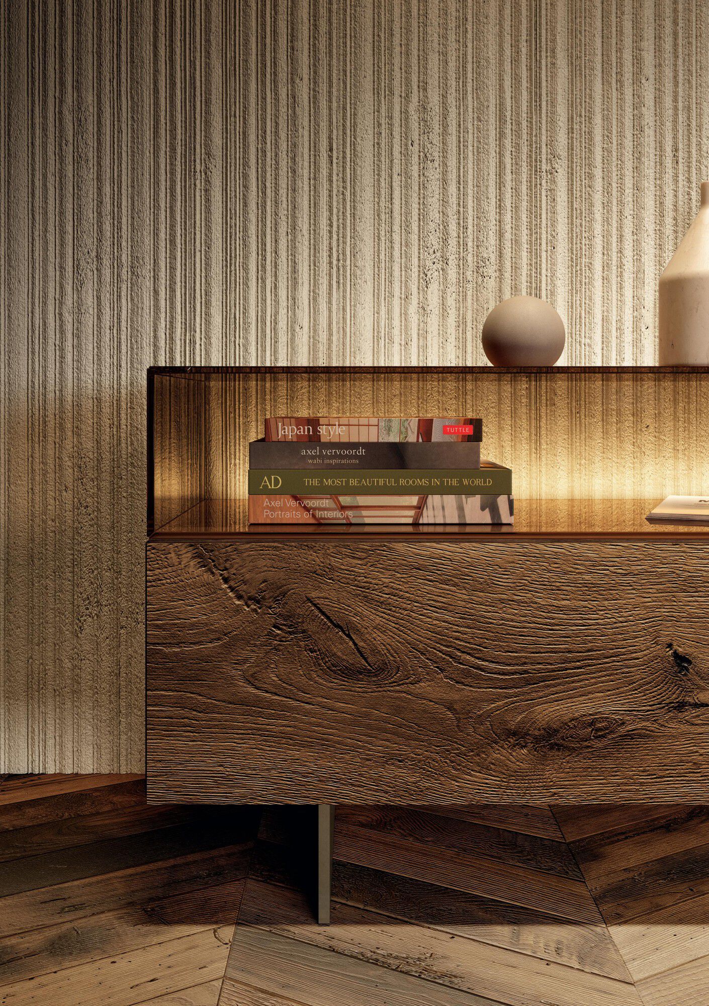 The elegant, modern 36e8 Glass Tv Unit catches the eye with its see-through glass storage units in extra-clear, smoked grey or smoked bronze, adding a practical feature, as well as decorative detail, to the living room. Linear compositions with a sleek design are brought to life with eclectic mixtures of materials and finishes, all thanks to LAGO’s XGlass marble, metal and fabric textures, Wildwood and 32 colour finishes. These Tv units offer stylish possibilities when it comes to creating your composition, giving your living room an original stamp.