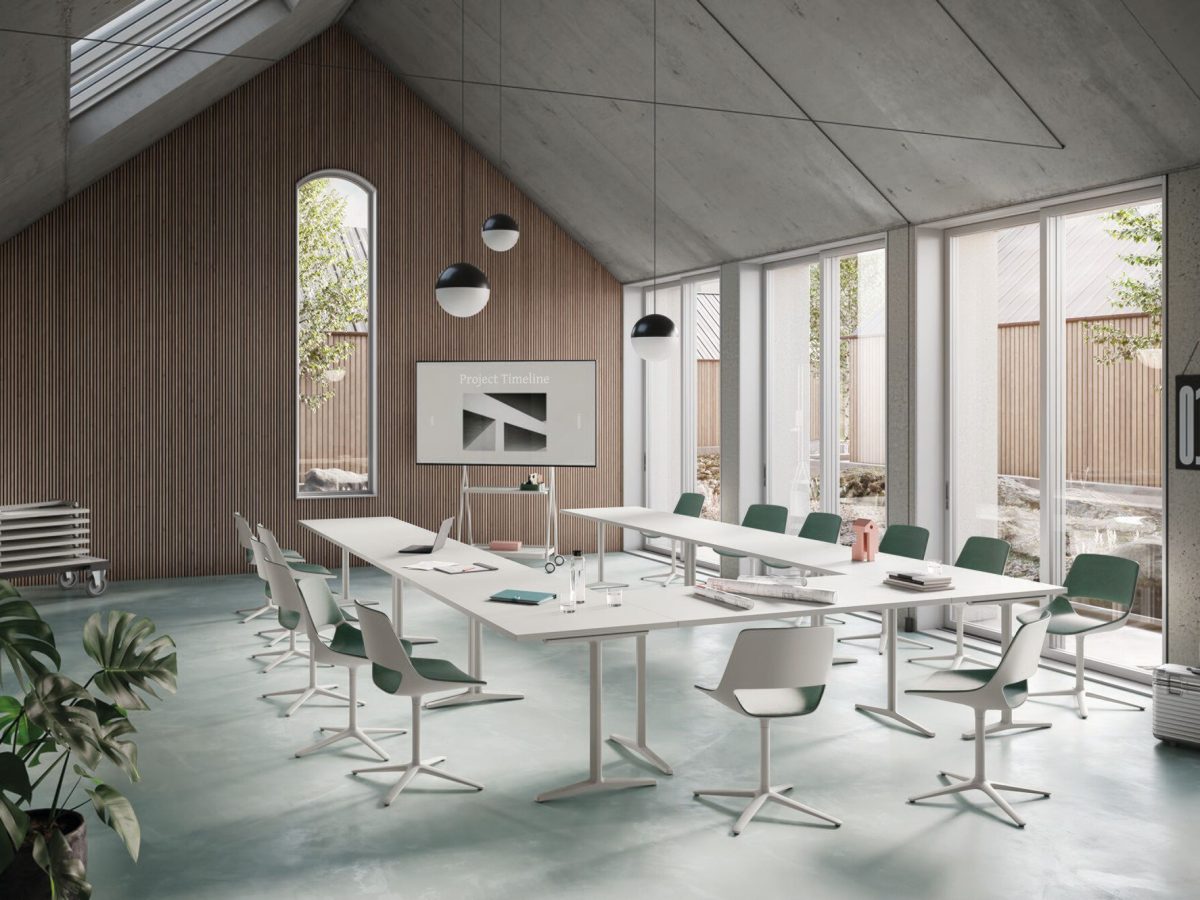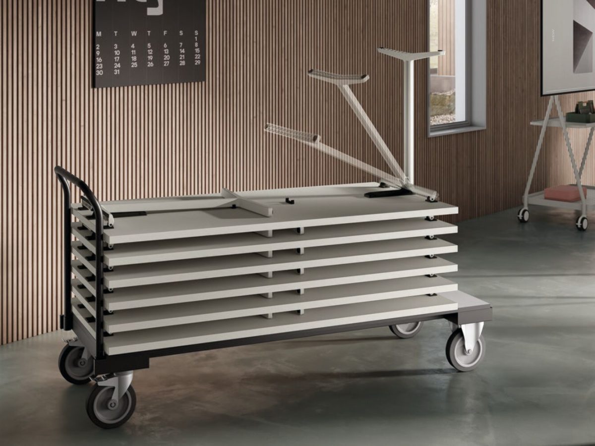 Folds like a charm: design and functionality in one. advance combines elegant design with practical flexibility. The T-shaped die-cast aluminium frame with stacking rails provides stability and easy handling. The fail-safe folding mechanism ensures safety, while the clever cable guide rail in the table leg keeps things tidy. Perfect for stylish events.
