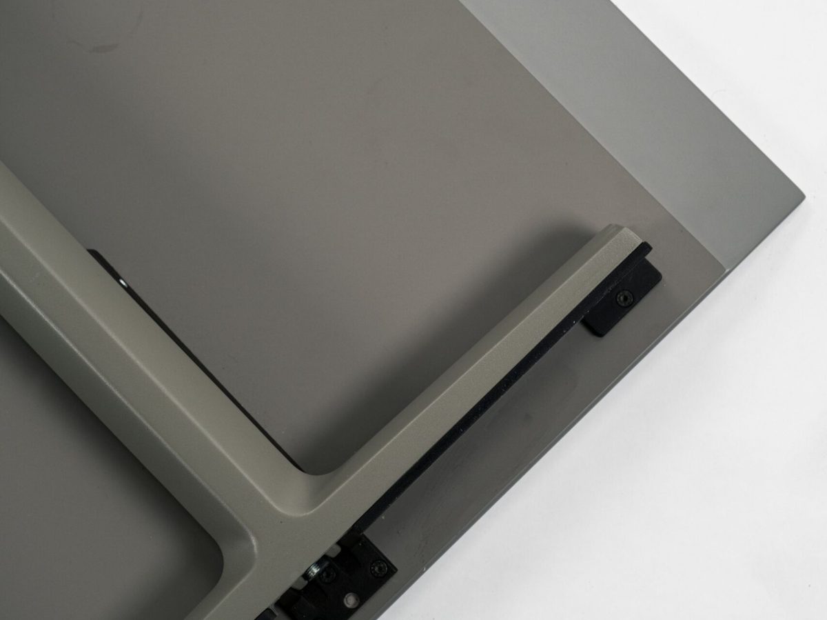 Cable guide rail in the table leg with optional cable routing to match the frame finish