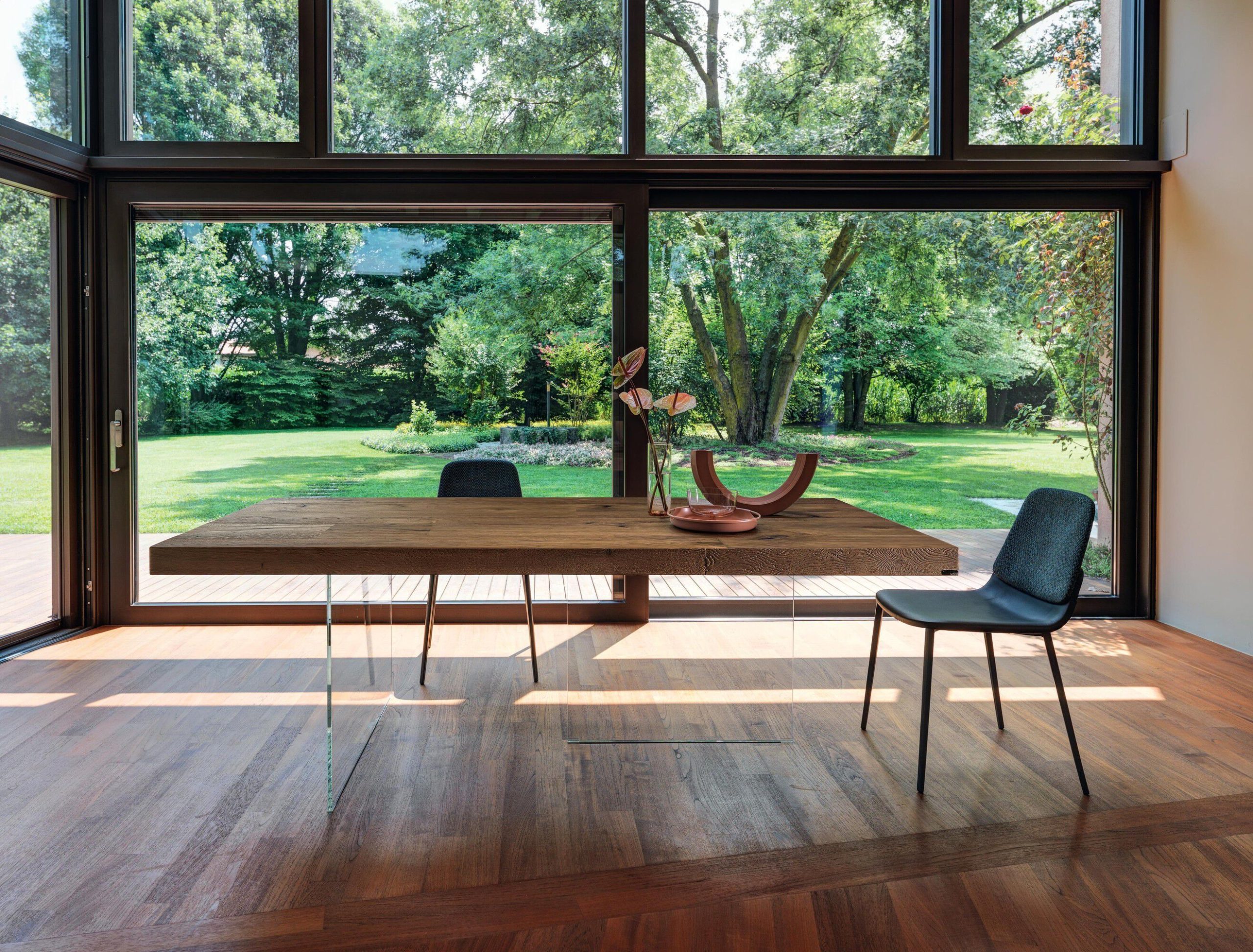 Stunningly simple, the Air table looks as though itβs floating mid-air: monolithic tops measuring 8 cm thick float mid-air thanks to invisible, highly resistant tempered-glass legs that guarantee strength and safety. Available in a variety of materials and shapes, Wildwood tops feature a 3D grain of a lightened solid hundred-year-old oak, which is heat-treated to ensure it stands the test of time and is resistant to liquids.