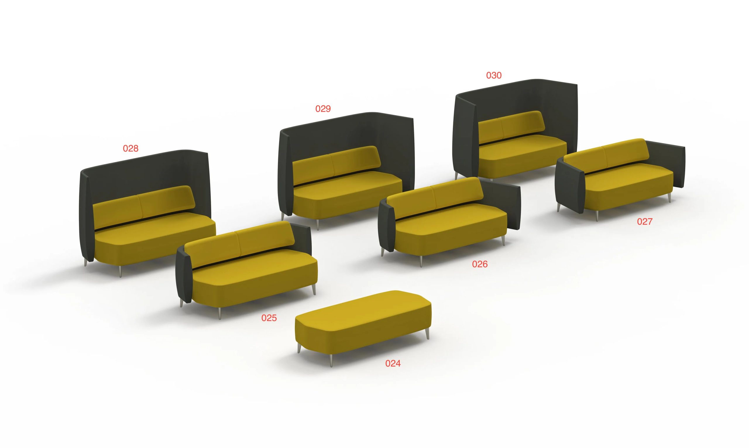 AirWave is a new modular seating solution that combines style, comfort and versatility. A waiting seat collection that offers performance characteristics that respect both user privacy and airport layout standards. Airwave illustrates this desire to find solutions adapted to specific market requirements. It has been designed for intensive use and can be configured in all contract environments and public spaces, including airport lounges, hotel lobbies, corporate offices, universities, public rooms and other waiting areas. The seating line starts with single ottomans and benches with or without low or high-profile back support that can be arranged in a linear or curved series, followed by endless possible single and double configurations of single and double seats. Thanks to its design innovation and endless customizable features, AirWave can appeal to a wide range of contract environments and can be modified over time to adapt to new and evolving trends. The option to include wireless mobile charging, USB-A, USB-C and UFK sockets brings this solution to the forefront of power-enabled seating. Seating with high back panels can be arranged stand-alone, side-by-side, or combined to generate various sinusoidal curve patterns. The shape of the high or low backrests combine to create numerous configurations of sinusoidal curves, allowing you to optimize floor space; units with high backs can be arranged individually, side by side, or combined to generate various patterns. Depending on the arrangement of seating in short, medium, or long wave sine curves, a variety of configurations of collective spaces (teamwork, informal meetings) or more private niches (relaxation or reading areas, individual work) can be created.