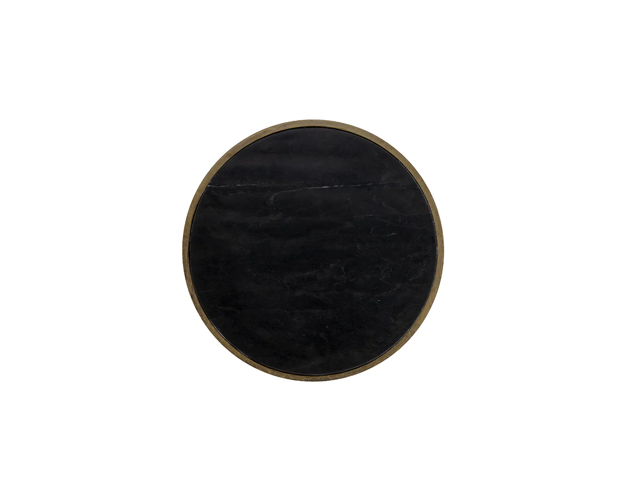 Eye-catching from all angles, the Alicent End Table is sure to draw attention. Features a round white marble table top with an antique brass iron base. Expertly crafted with an artful design. As marble is a natural material, unique veining, pitting, fissures, micro-cracks and colour variations are all characteristics that add to the uniqueness and beauty of each piece. Made in India. With refined craftsmanship, this design was brought to life by skilled local artisans. Due to the nature of handcraftsmanship, unique imperfections such as fissures, markings and variations in colour and shape are welcomed and appreciated characteristics for a truly one-of-a-kind piece.