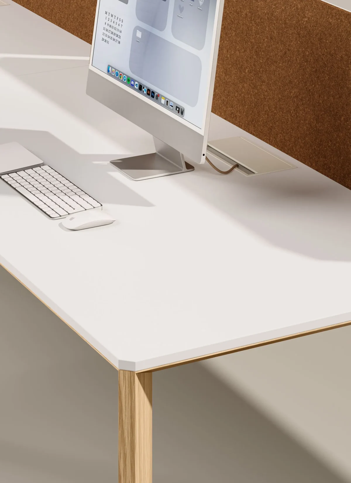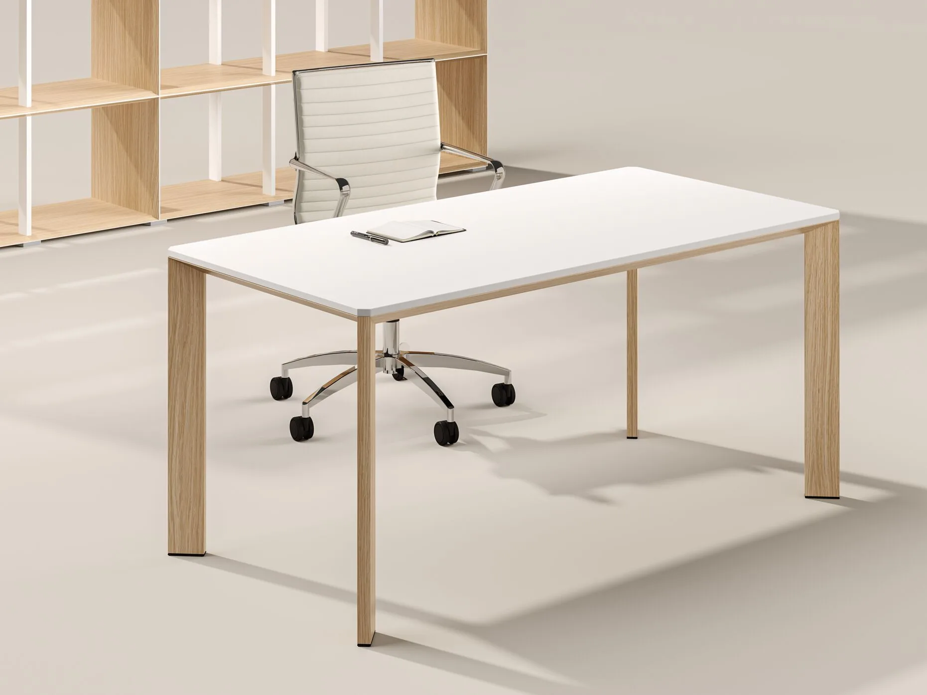 Alis expresses the perfect fusion of elegance and functionality, transforming the studios design rigour and sensibility into simple yet sophisticated elements. The collection consists of a system of workstation and semi-executive desks, meeting tables, bookshelves and storage solutions that seamlessly integrate with their setting, offering the ideal balance of rationality and character. The square and rectangular versions, alongside the 140 x 280 cm meeting table, offer versatile solutions to meet the needs of the contemporary workplace, while the bench, which can be customised with a fabric-covered screen and cable management, optimises collaborative working. The choice of finishes (white and oak) and materials is also rigorous and no frills: the tables are made with an aluminium structure coated in Microflex ultra-flexible laminate, and a top in white faced chipboard (made from 100% recycled wood). The bookshelf, made up of 2, 3 or 4 stackable modules (open or closed), echoes the same decorative style, and the oak of the melamine-faced tops perfectly matches that of the laminate legs, thanks to the companies within the Fantoni group working in synergy.