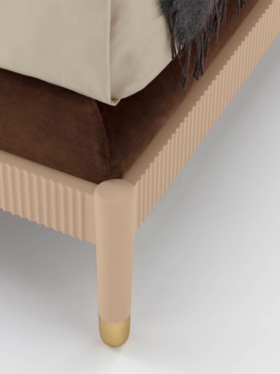 Inspired by a classic style with a contemporary appeal and linked by a brilliant design that definitely doesn’t go unnoticed. Traditional charm comes together in the bed Amante using a topical, refined aesthetic language with vintage undertones. Light volumes, precious and significant finishes – such as the hand-pleated headboard finish – make this model equally elegant and majestic in the plain-headboard version as well. The graceful bed frame rails are in fluted, lacquered wood and accommodate the soft, padded frame of the bed base.