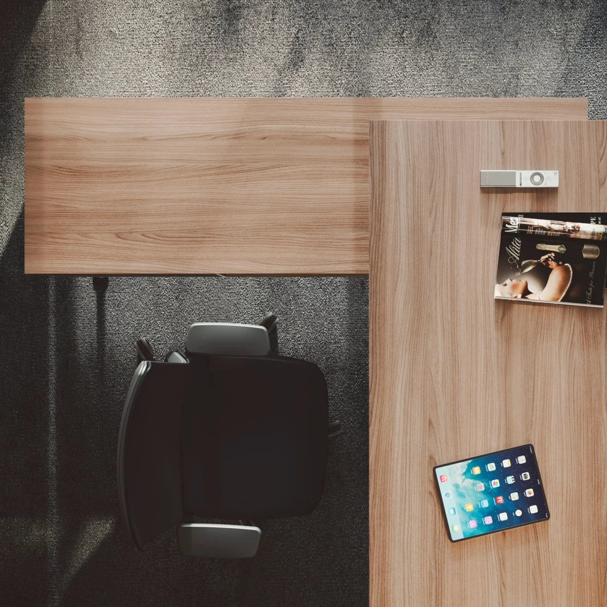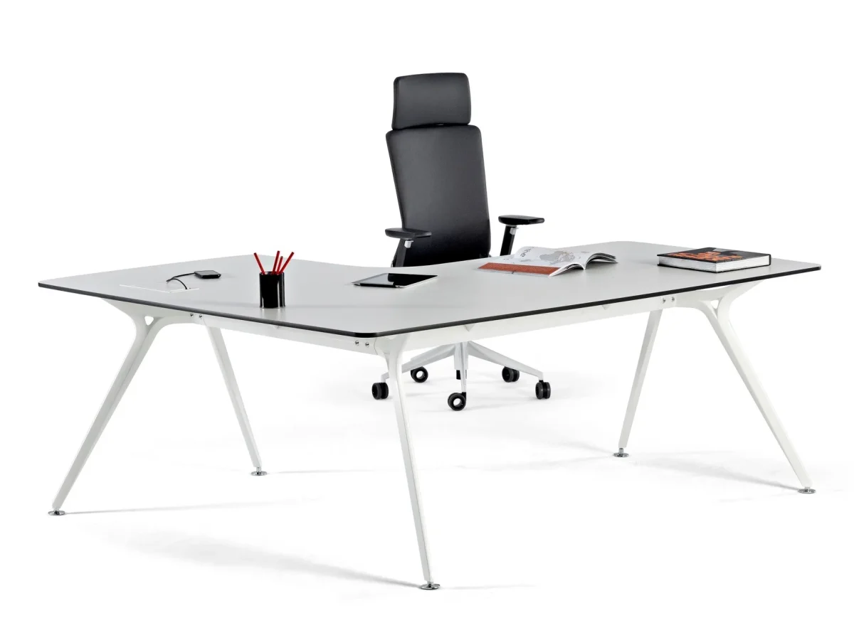 Arkitek is the L-shaped office desk. Top in glass, MFC or laminate.