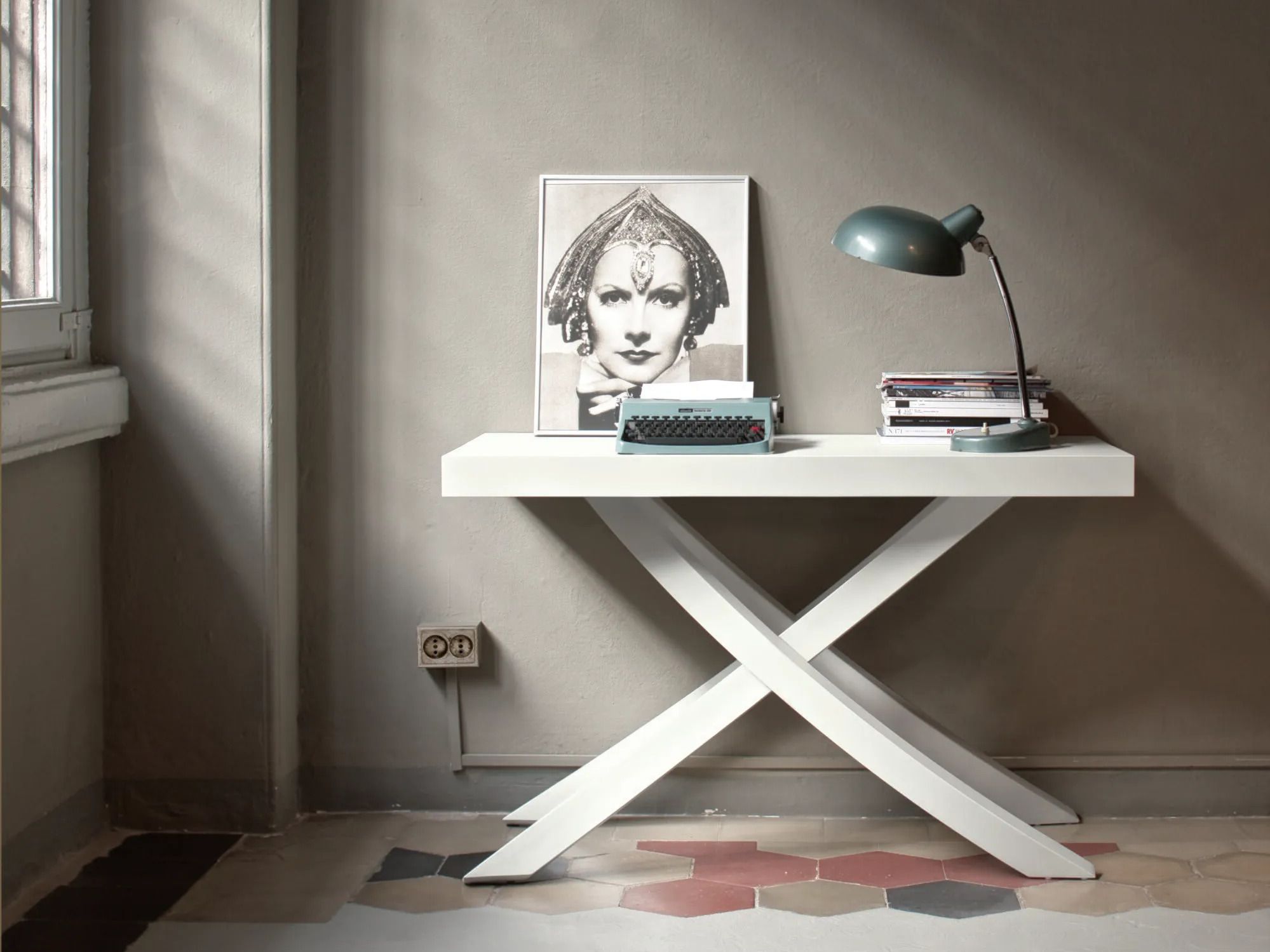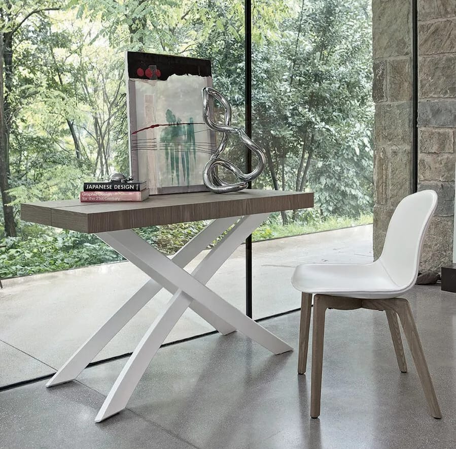 Artistico is a console with lacquered metal frame, top and extensions in veneer wood or lacquered wood.