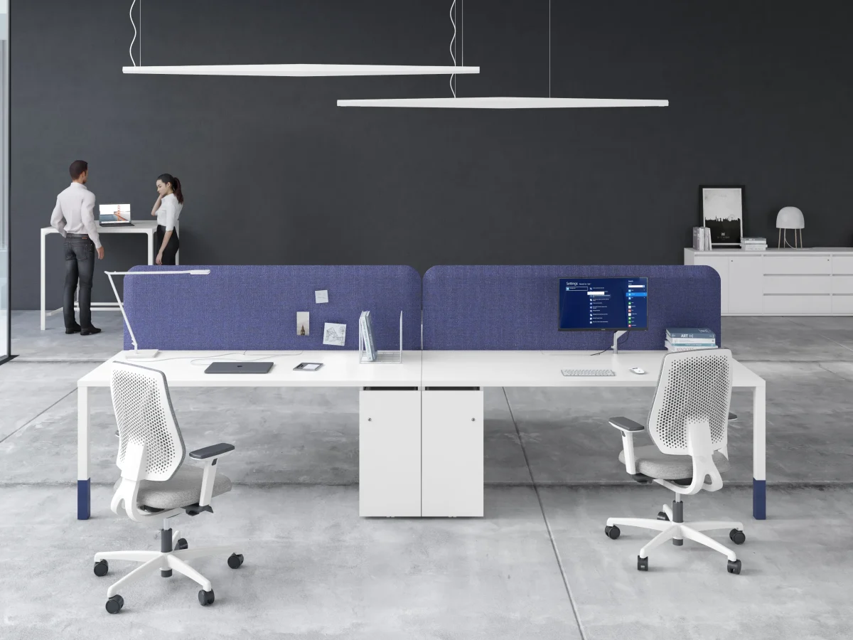 Asterisco APP is an evolution of the historical Asterisco 2002 Asterisco-IN 2010 by Estel, featuring two different type of legs: Portale and Cornice. A metallic structure connects the external legs, creating a flexible system of modular desks. Worktops are squared or rectangular shaped with a thickness of 30 mm and are available in a wide range of finishes. Screen panels are upholstered in fabric (available in different sizes and shapes). Electrical connections are integrated in all compositions (single desks and benches). Many accessories are available: top access, accessories bars, monitor arms, CPU holder, screen panels, whiteboards, cable holders, cable trays, thermoformed cable and plugs tray with modesty panel function.