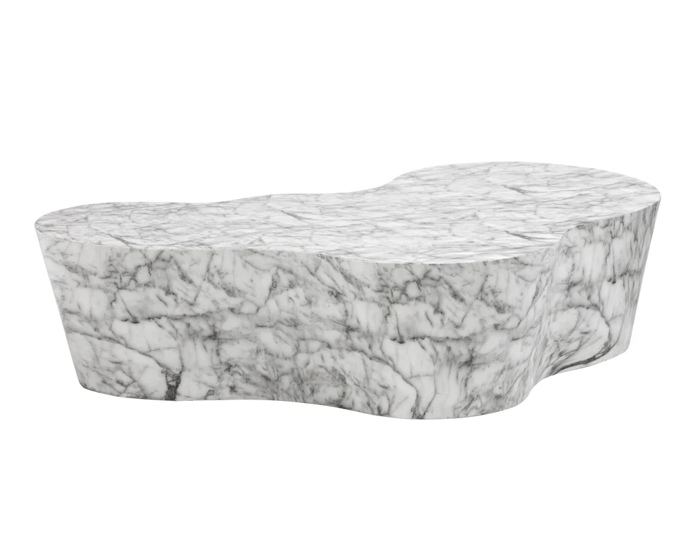 A contemporary and alluring coffee table. Sculpted from concrete and overlaid with a marble-look finish. The shapely design is eye-catching and unique for placement in residential and contract settings. Features & Benefits Glass fibre-reinforced concrete is incredibly durable and long-lasting. Sealed with a topcoat for added protection against moisture and staining. Marble look features unique veining and is specially crafted to resemble the natural elegance of marble. Finished and sanded by hand. Crafted from a natural concrete mix, each piece will look different. Variations in colour, texture, imperfections, surface scratches and non-structural hairline cracks are inherent and valued qualities of concrete. Apply protective covers or store indoors when not in use and during inclement weather to prolong the life of outdoor furniture.