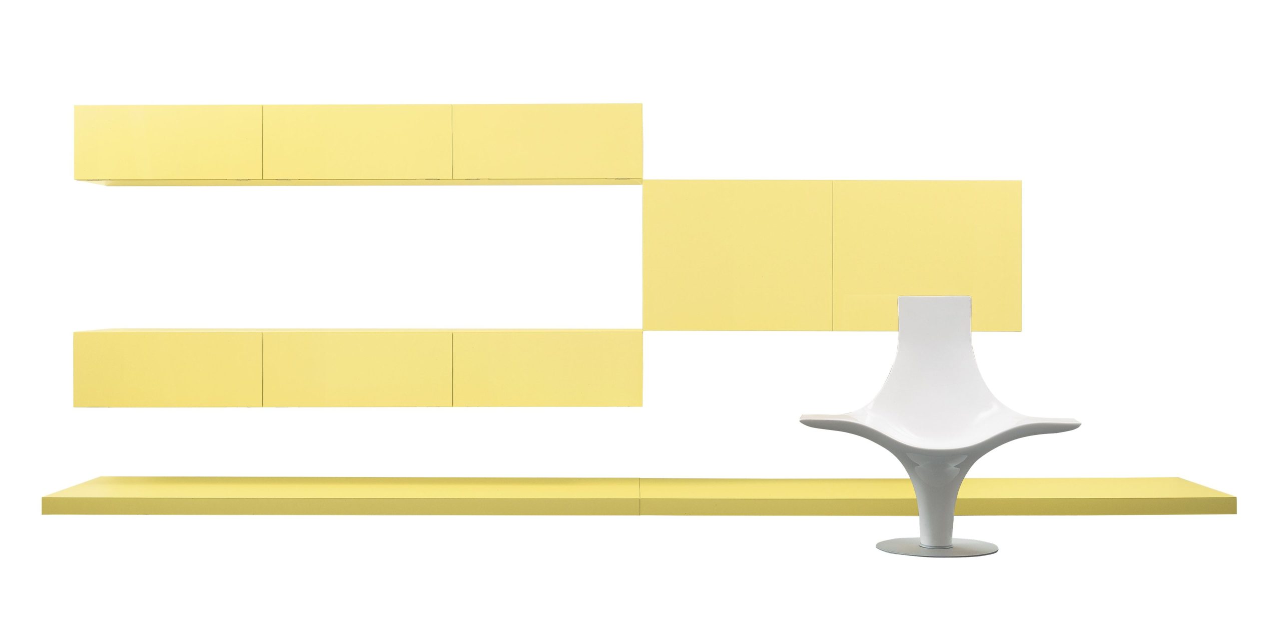Created for use in both domestic and contract settings, the Aviolux range of containers, designed by Studio Cappellini, is composed of wall-mounted elements, also available with hinged doors (equipped with internal shelf) or fall-front doors.