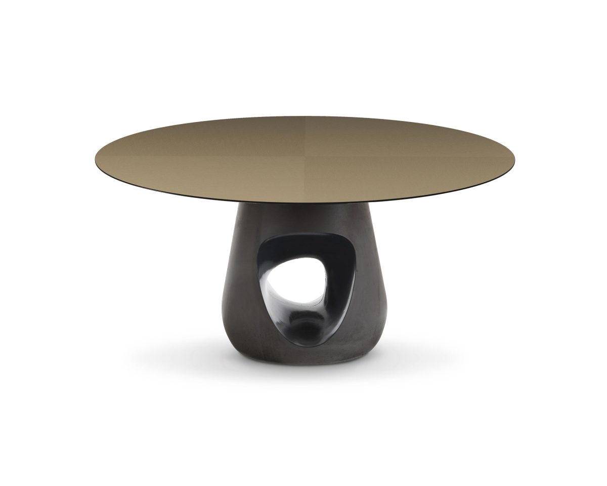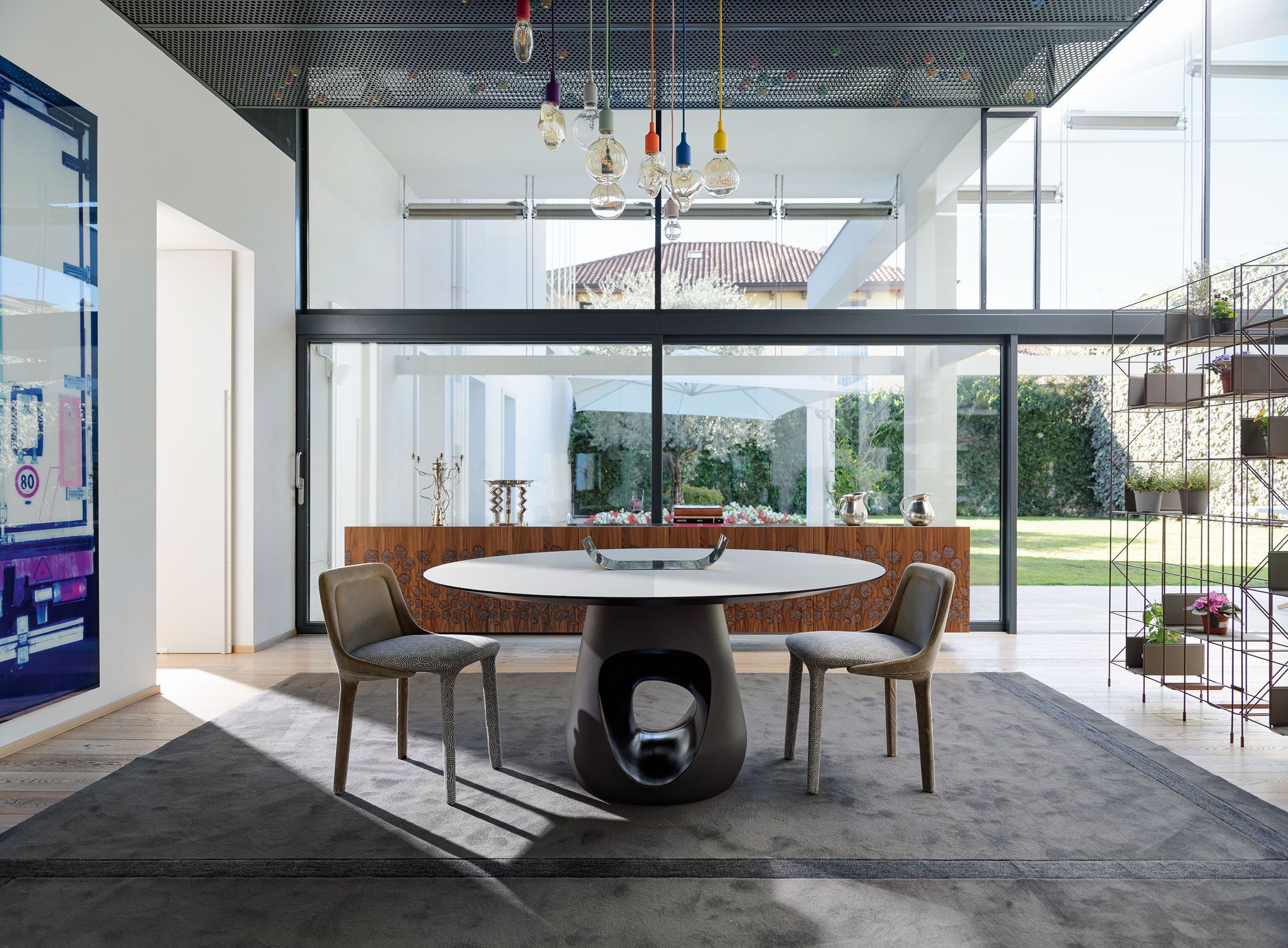 Barbara is a table with an oval or round walnut or oak wood top and a central concrete base. The product draws free inspiration from the works of the English sculptor Jocelyn Barbara Hepworth (1903-1975), and from her incessant study of the relationship between humans, the natural environment and materials. The sculptural shape, generous dimensions and precious marbles contribute to giving the table a luxurious and contemporary look with undoubted personality.