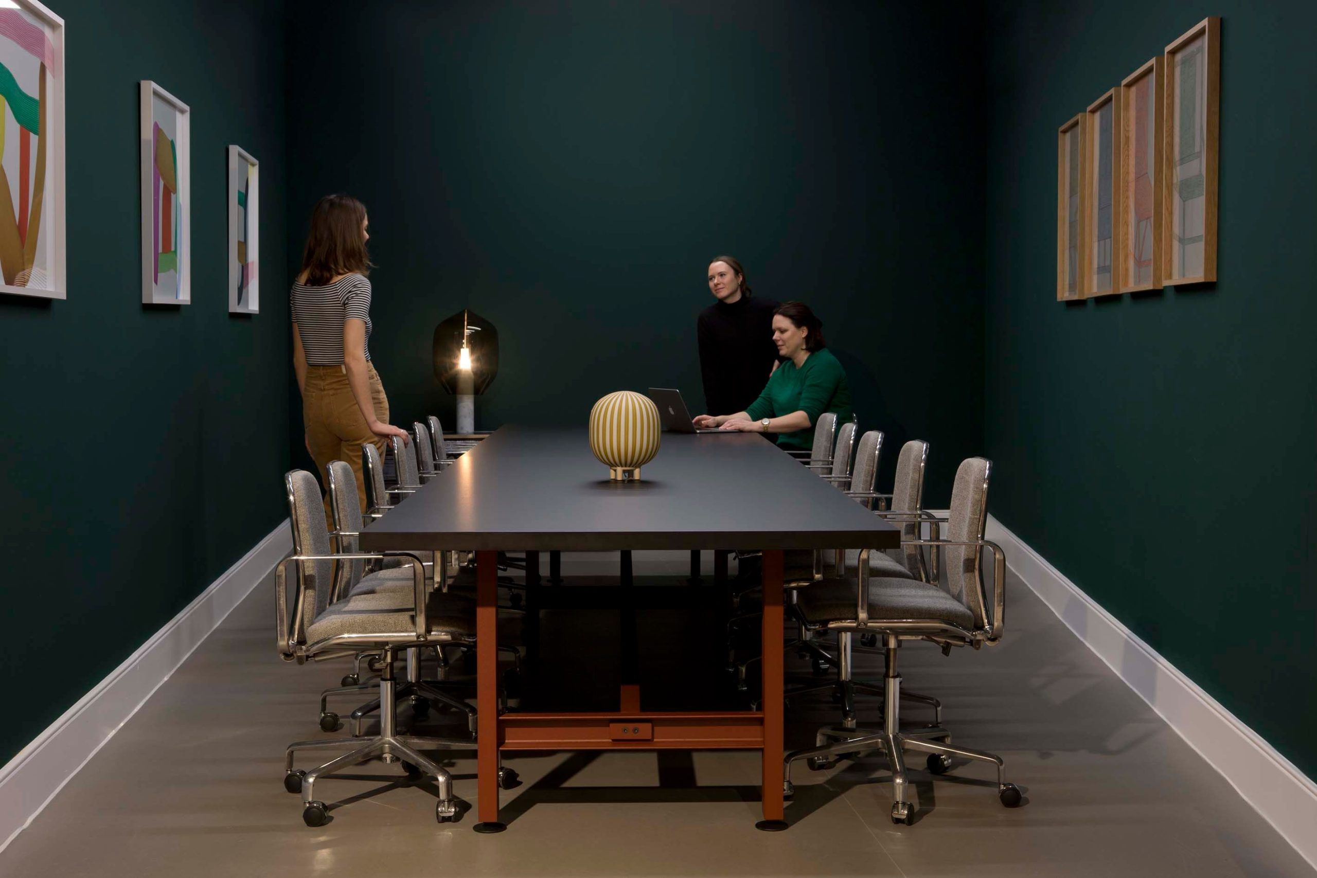 Beam is a table made of powder-coated steel and veneered wood, suitable for use as a meeting, conference, or dining table.