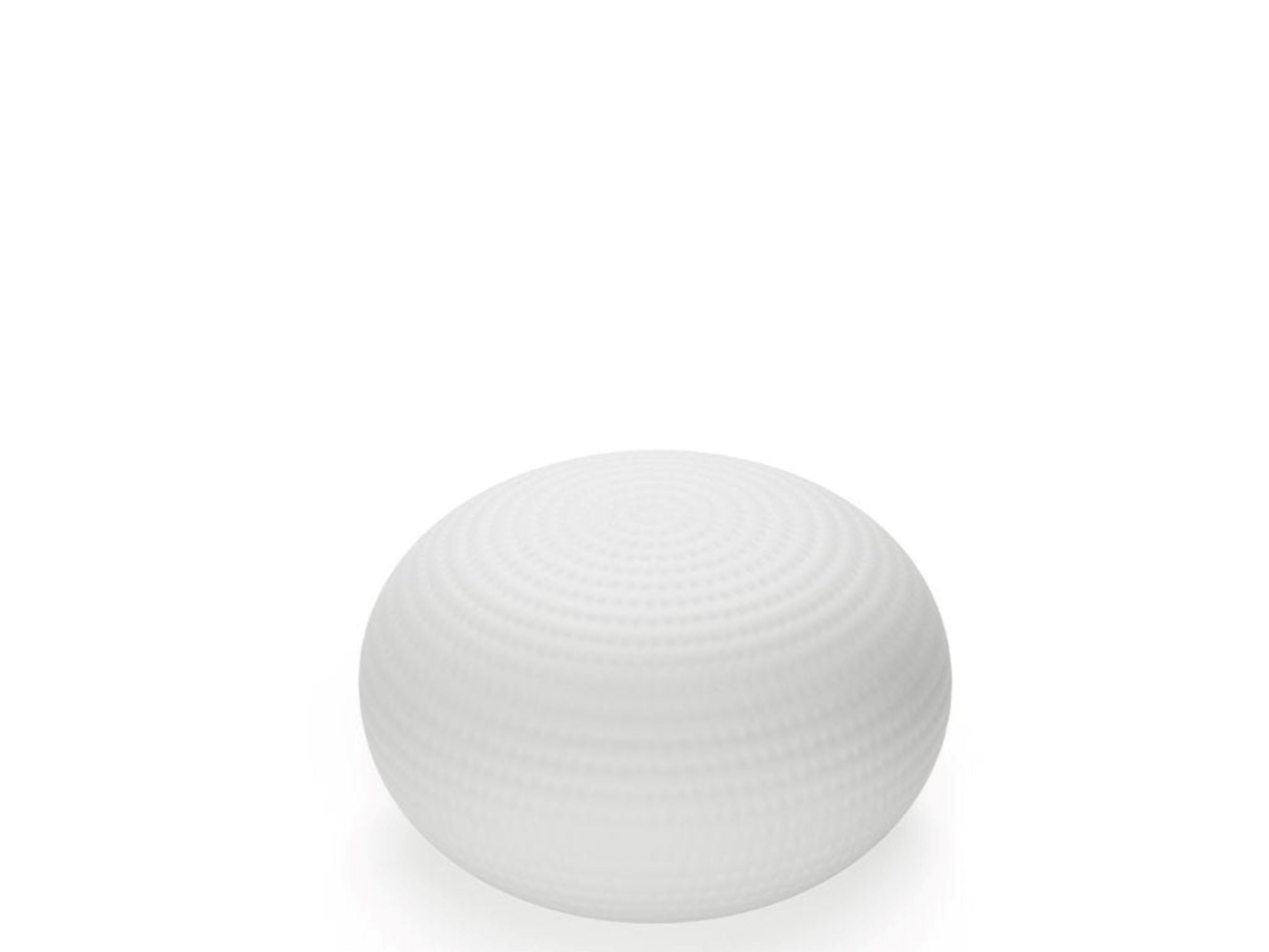 Bianca is a family of luminaires with the decoration on the diffuser surface features an orderly series of shallow delicate grooves etched into the white glass, yielding an effect resembling small footprints on fresh snow. Mouth blown, belt sanded and dipped in acid to obtain the distinctive ‘silk effect’ typical of fine glassware, Bianca diffusers are available in three different diameters to complete all thirteen types of luminaires belonging to the family. The largest diffuser has a 50 cm diameter and, owing to its dimensions and the amount of glass involved, continues to pose a considerable challenge even for the ablest of glassbbottoms trained in the fixed-mould blowing technique, which – according to the traditional Venetian production process – is performed without any external aids for turning and shaping the glass blob inside the mould, but relies solely on the glassbbottom’s skill and lung capacity. Bianca is available in the following versions: table-top without stem, floor-standing with base and stem, pendant, wall-mounted and ceiling-mounted. The matt white coating applied to the various metal supports evokes the name and colour of the diffuser. Bianca produces a very warm, diffused and enveloping light emission in the surrounding environment.