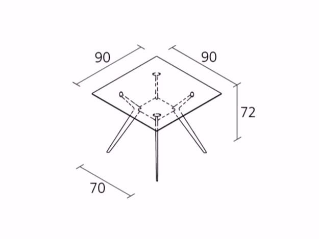A strong grasp of form and composition has given life to a collection of tables characterised by great flexibility in terms of shape, size and range of uses. The project derives from the idea of creating a broad and differentiated range of designs. The legs in die-cast aluminium are fixed both to a central base and to the table top forming a solid structure. The number of legs may vary as a function of the dimensions of the top, available in different shapes and finishes.