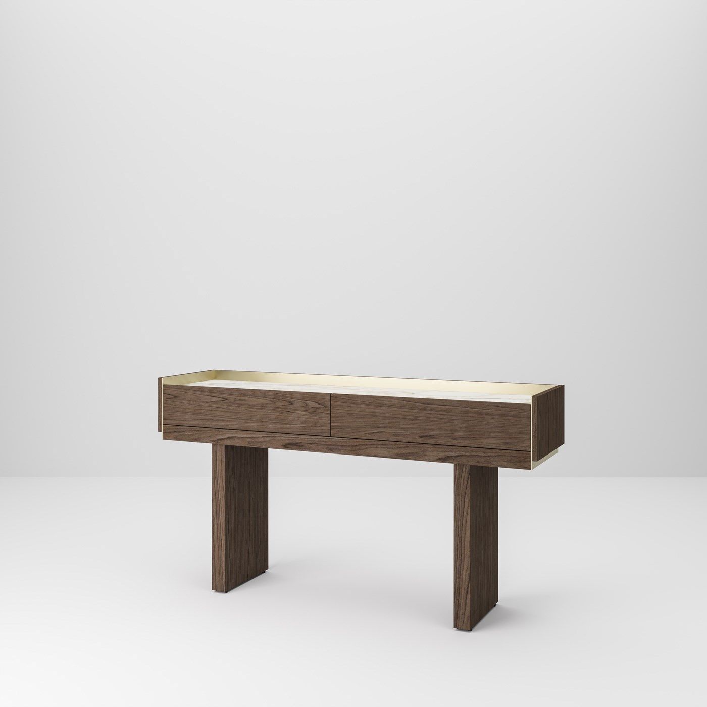 In search of the same refined aesthetic language, the collection expands with the proposal of new dedicated furniture, rigorous geometric lines and valuable materials, capable of completing and personalizing the work space. It consists of a series of containers, arranged in three different heights, a console and a family of tables, proposed in various sizes, to be combined with surprising combinations.