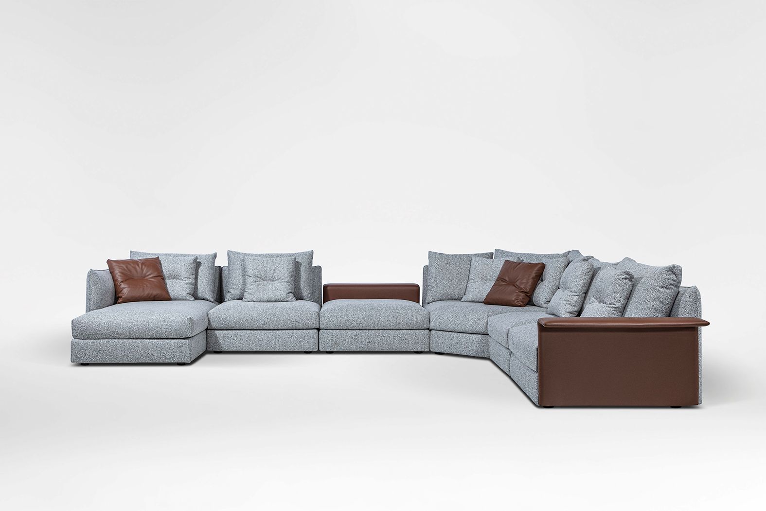 Bloom is a modular sofa, which can be modulated in different combinations thanks to its numerous modules such as the chaise longue, the hexagonal module and the armrest with support surface. Linear or angular combinations can be obtained. There are many high quality fabric and leather upholstery options.