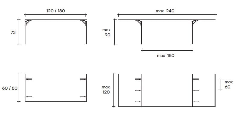 Bright is a desk in15 mm-thick tempered glass with aluminium and steel mounting supports. Also available custom-sized.