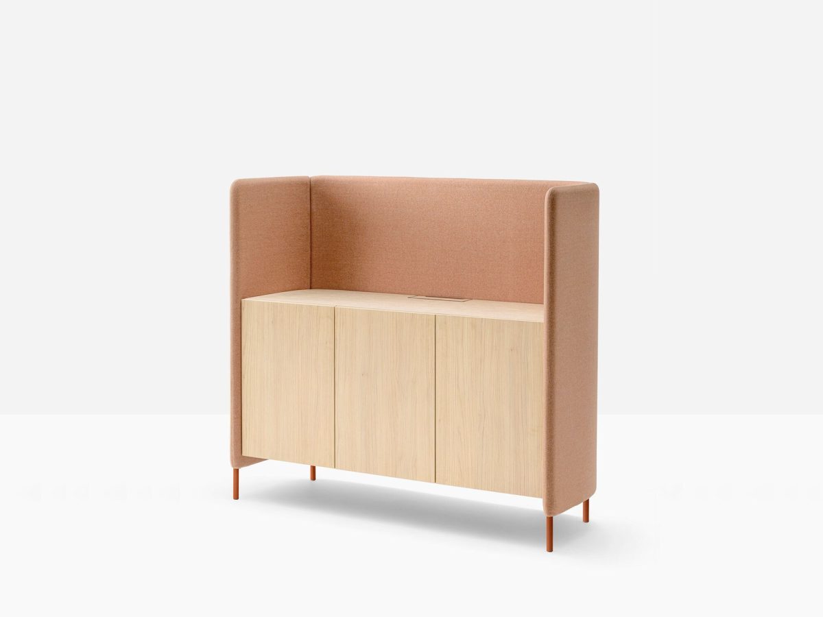 BUDDYHUB SIDEBOARD is a versatile piece of furniture providing storage capacity while serving as space divider in workspaces, both visually and acoustically.