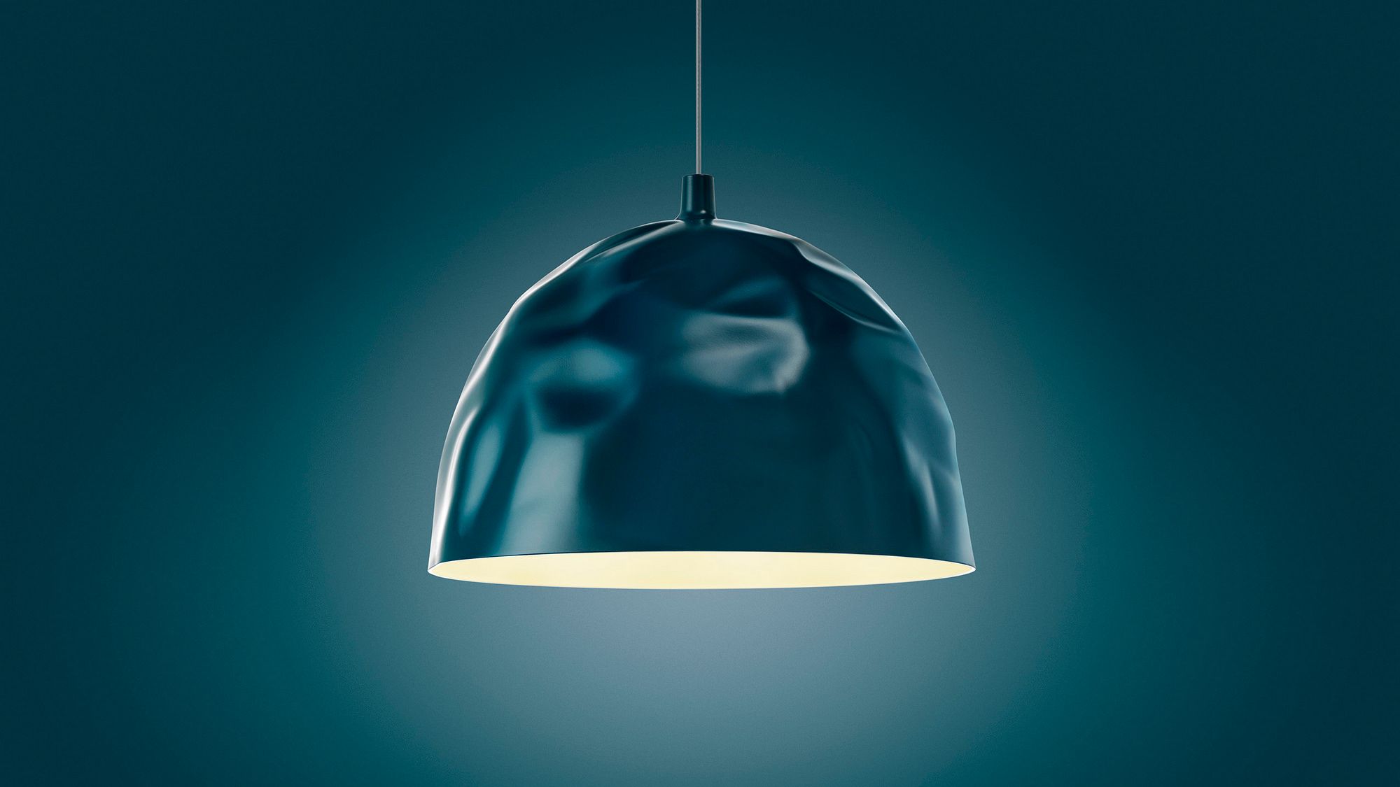 A dome lamp with an irregular surface that effectively illuminates the surface below it. In the “frost” version the light is aimed downward, while spreading into the room thanks to a translucent top. In the opaque versions the light is aimed only downward.
