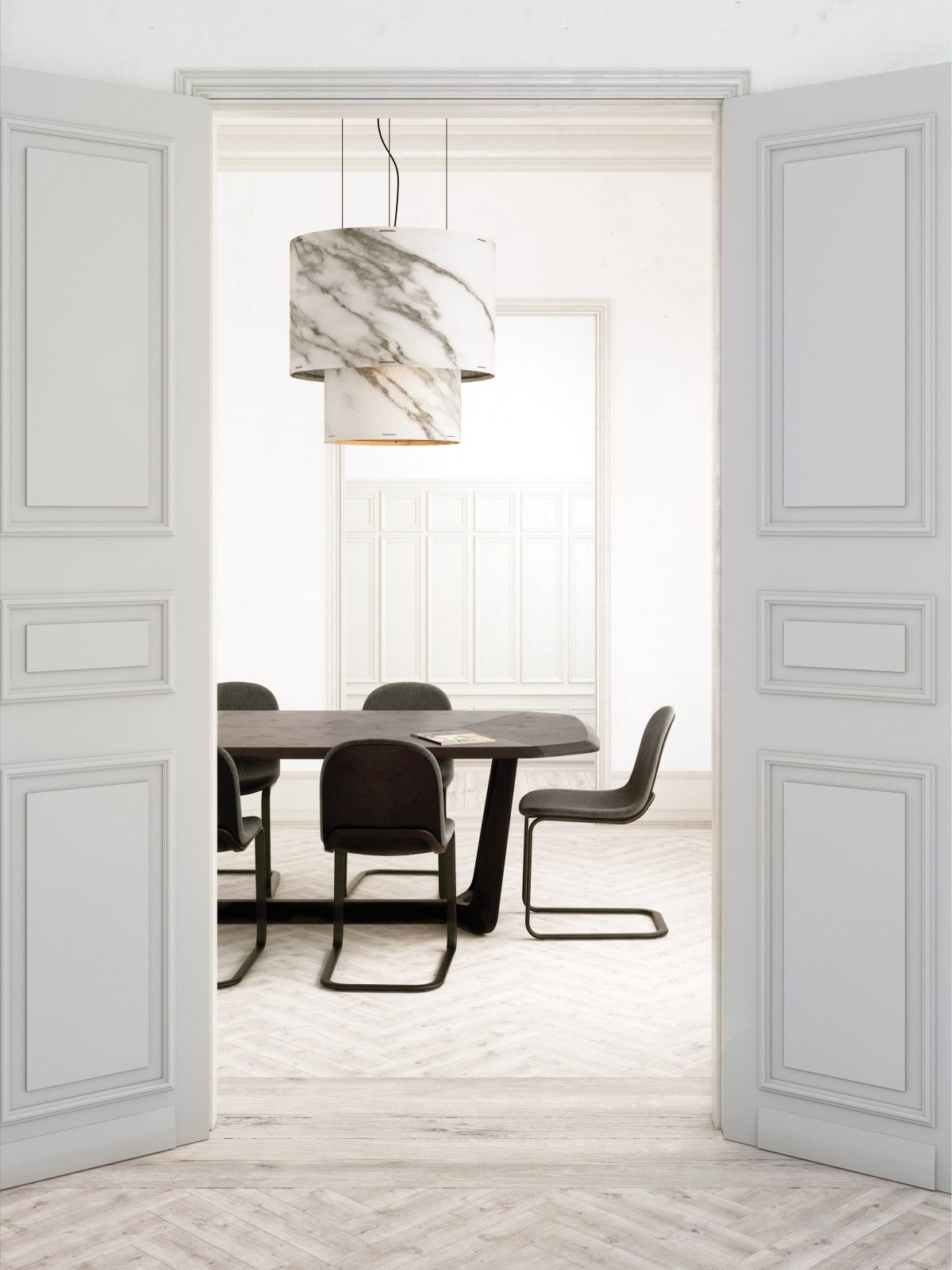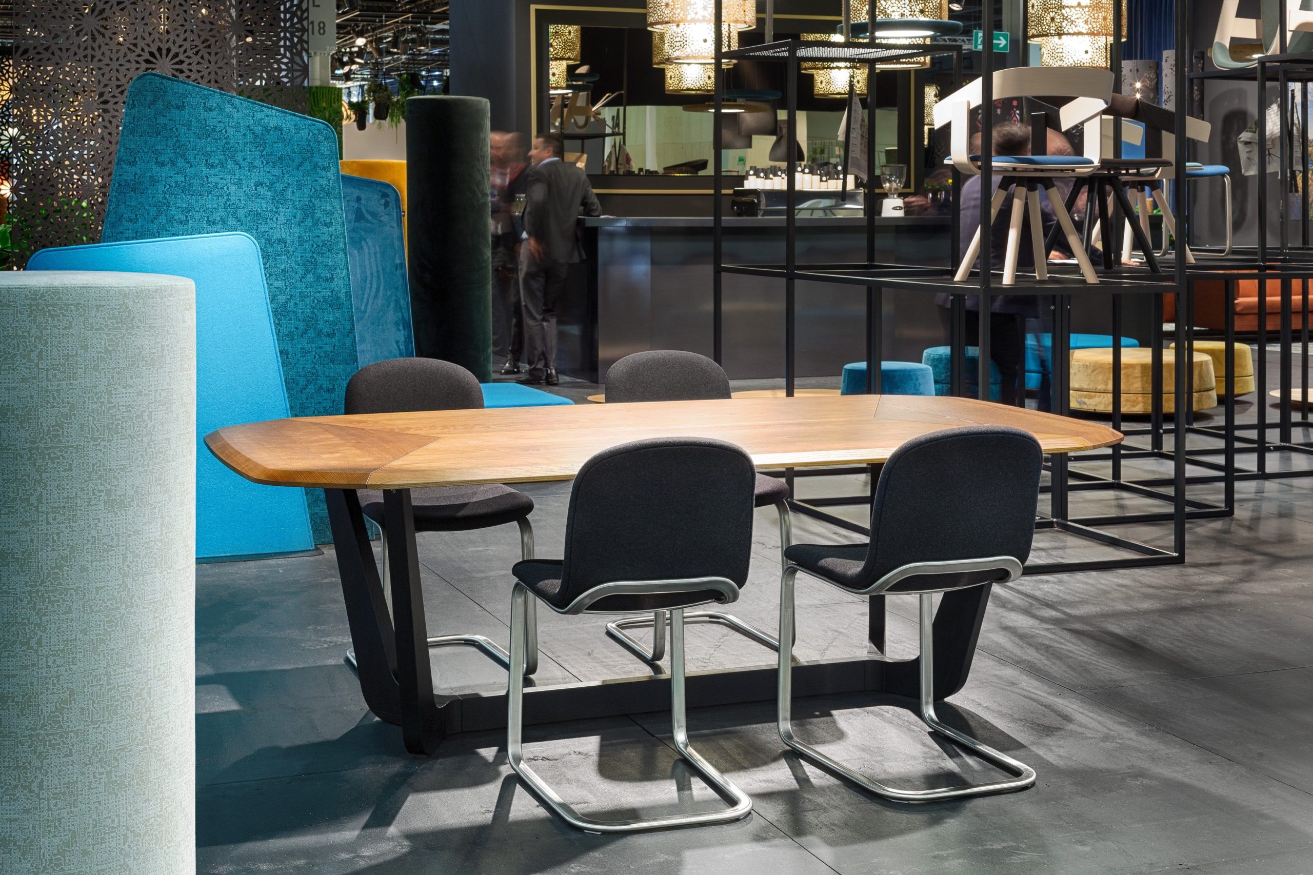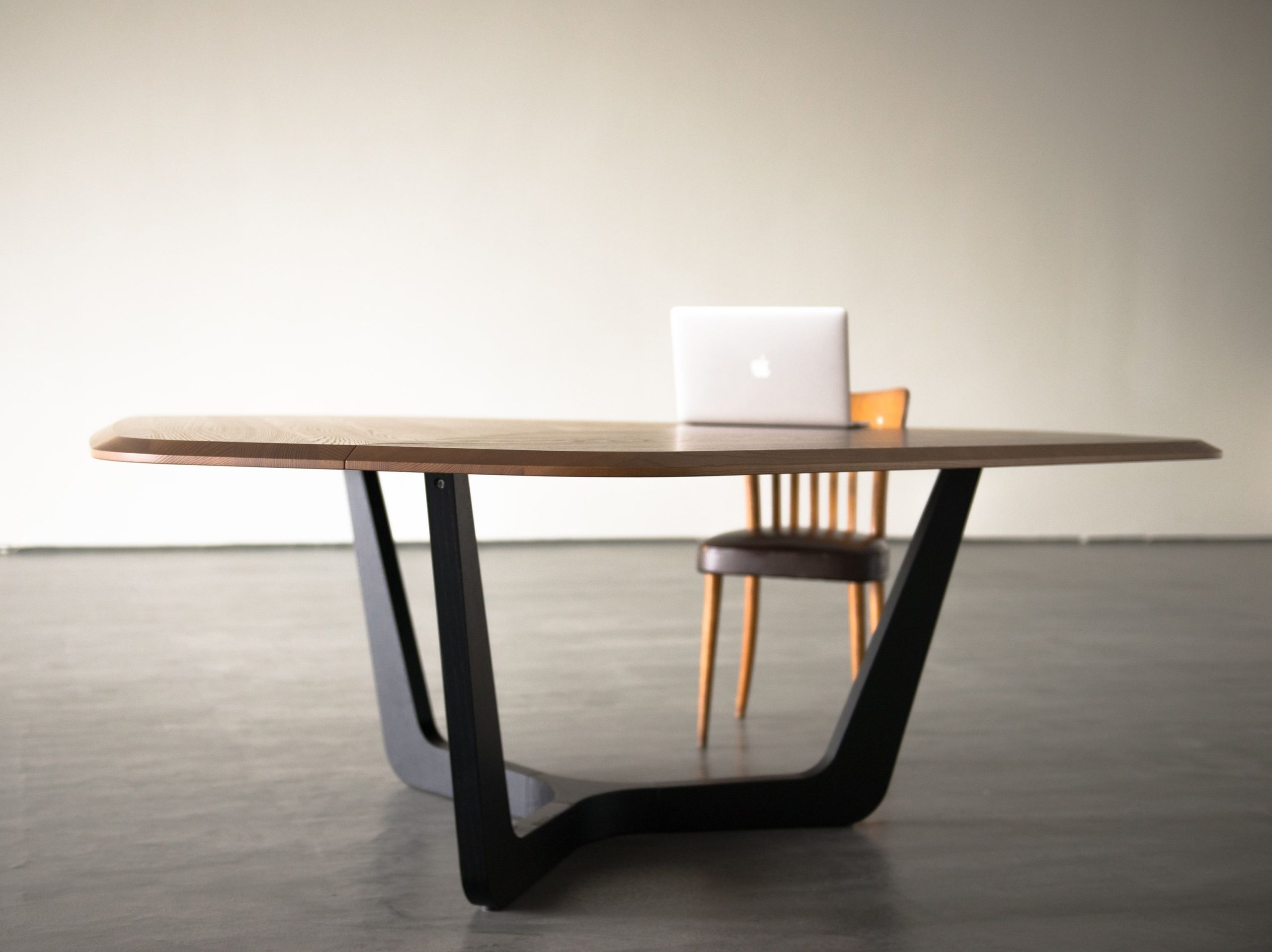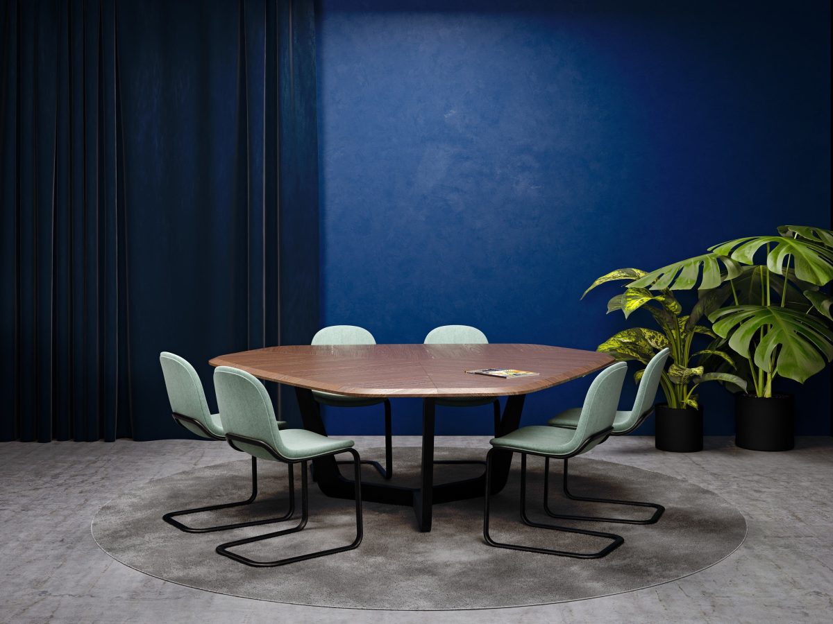 The original round table has been rethought in its simplicity. Tuning the outlines and bringing in soft edges results in a distinctive design language which makes BuzziTrihex unique. The base is intentionally streamlined and subtle in its design to showcase the natural beauty of the wooden top. Available in two sizes, one rounded and the other rectangular, the table can fit up to nine or twelve guests. The BuzziTrihex is offered in a solid wood tabletop and base. It can be used in a private office, a meeting room or a hospitality suite.