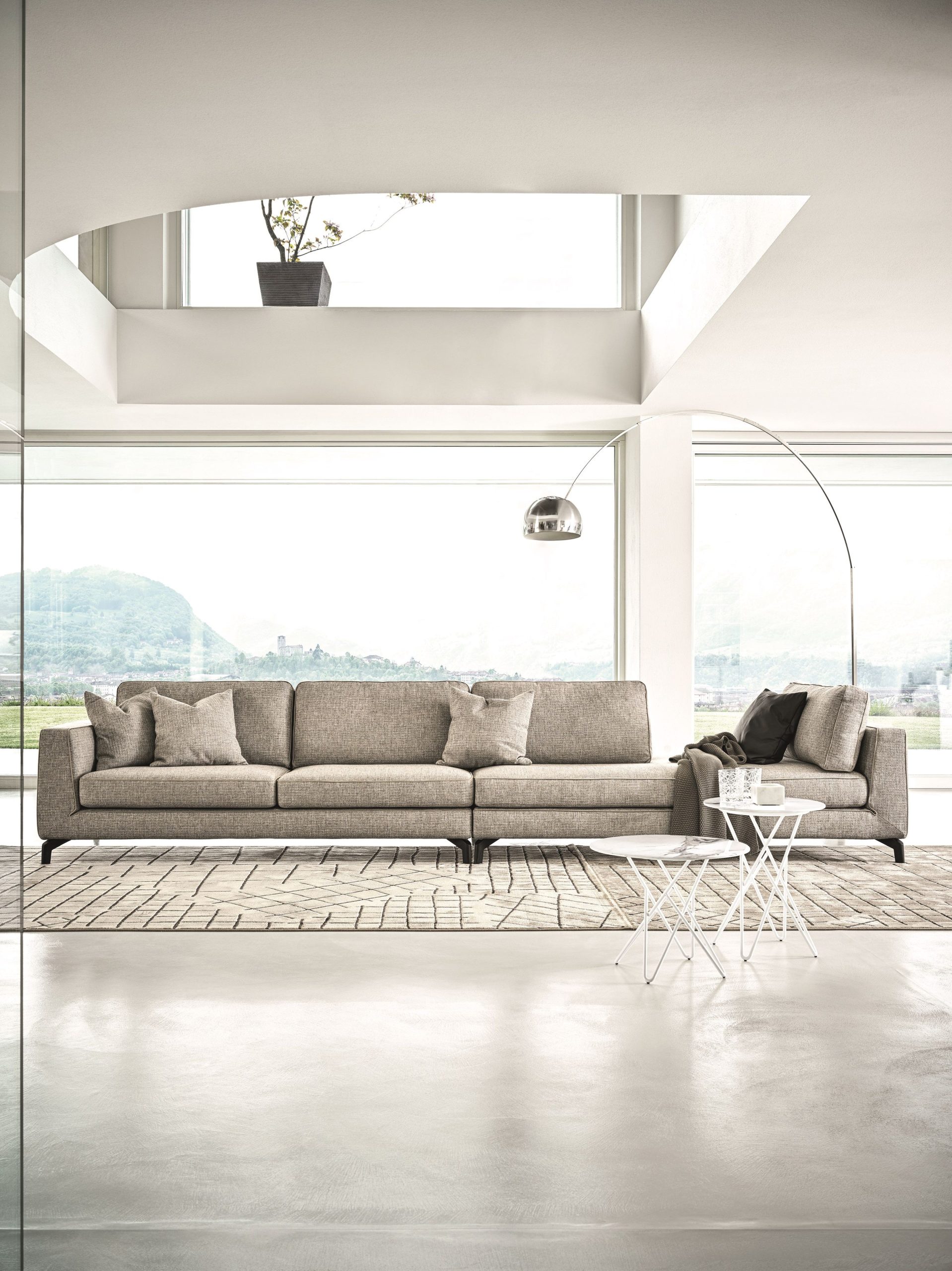 The trapezoidal section armrest makes the seat wider and more comfortable. Some versions of the Carré sofa offer a convenient integrated storage.