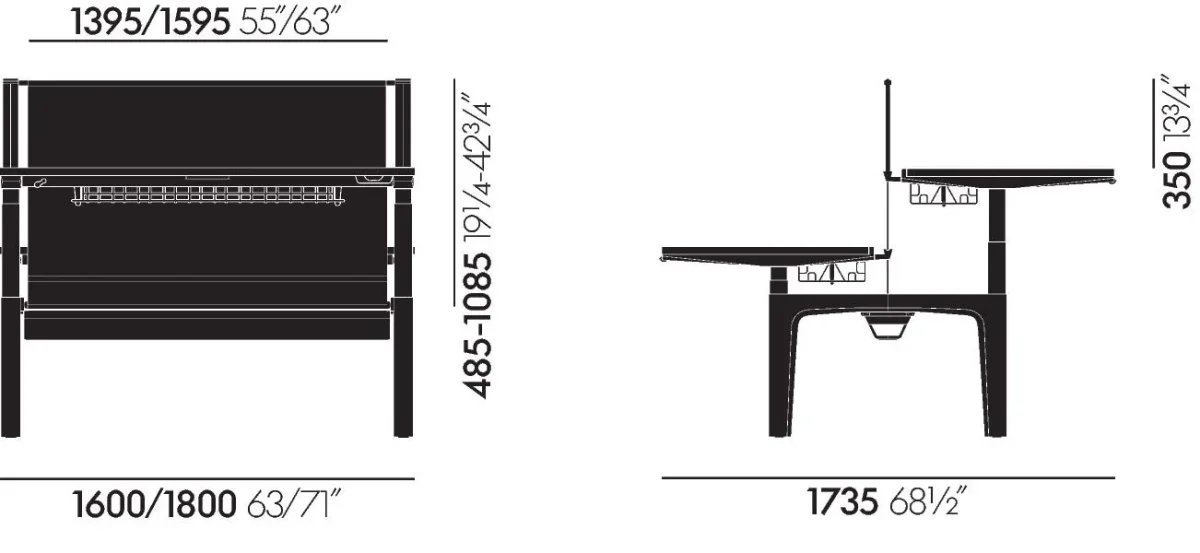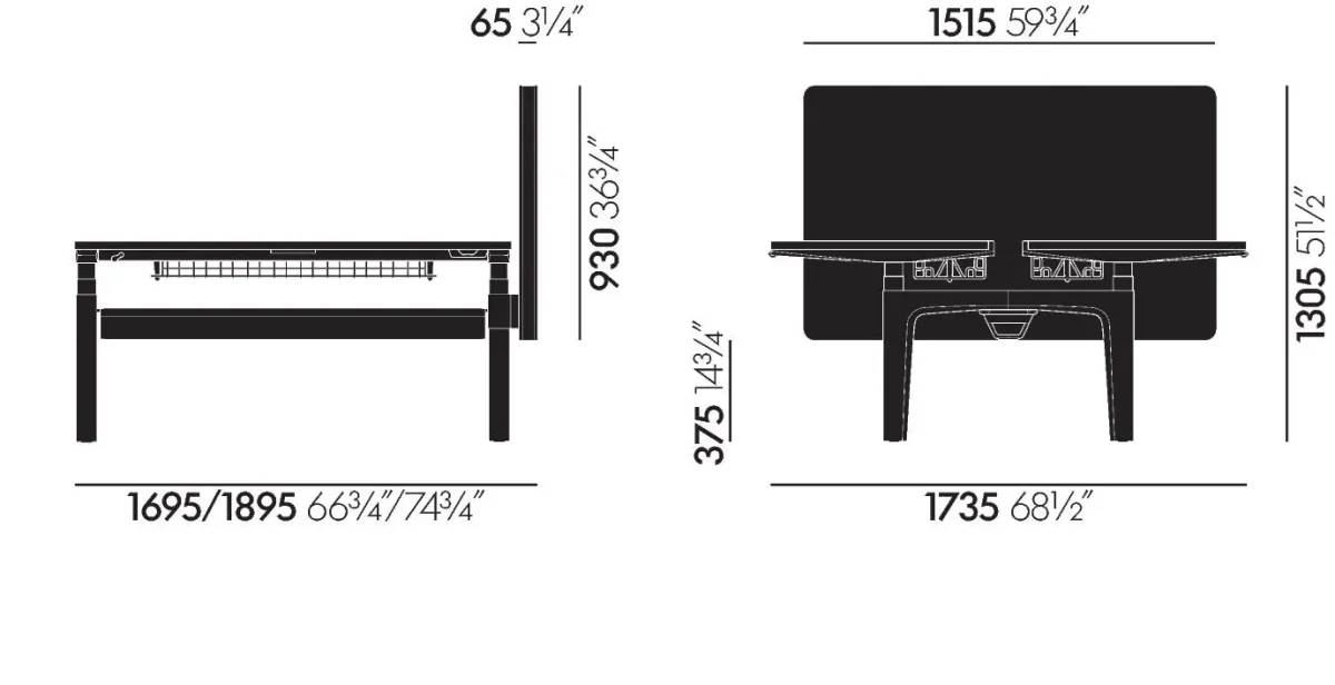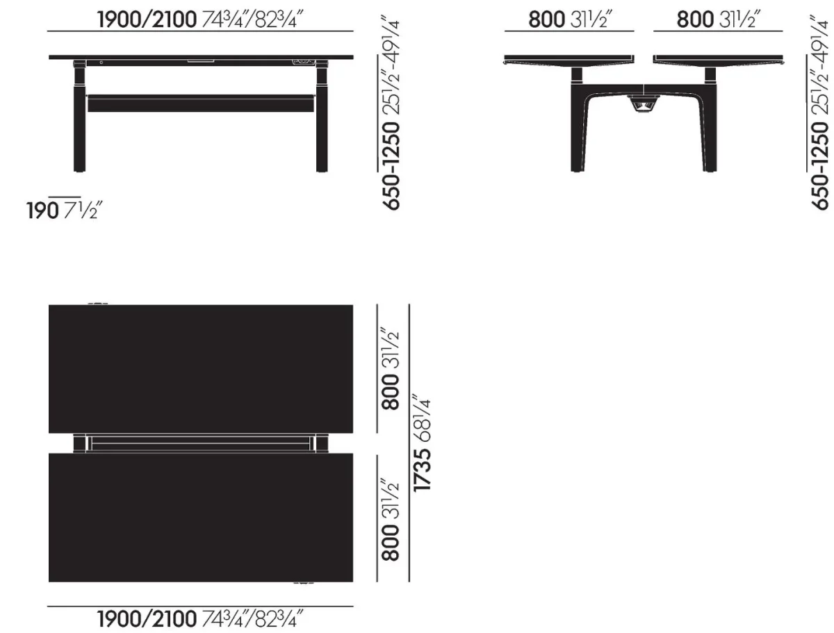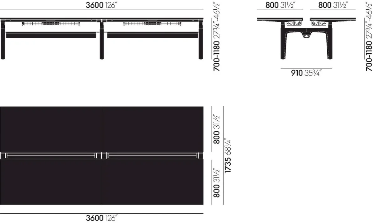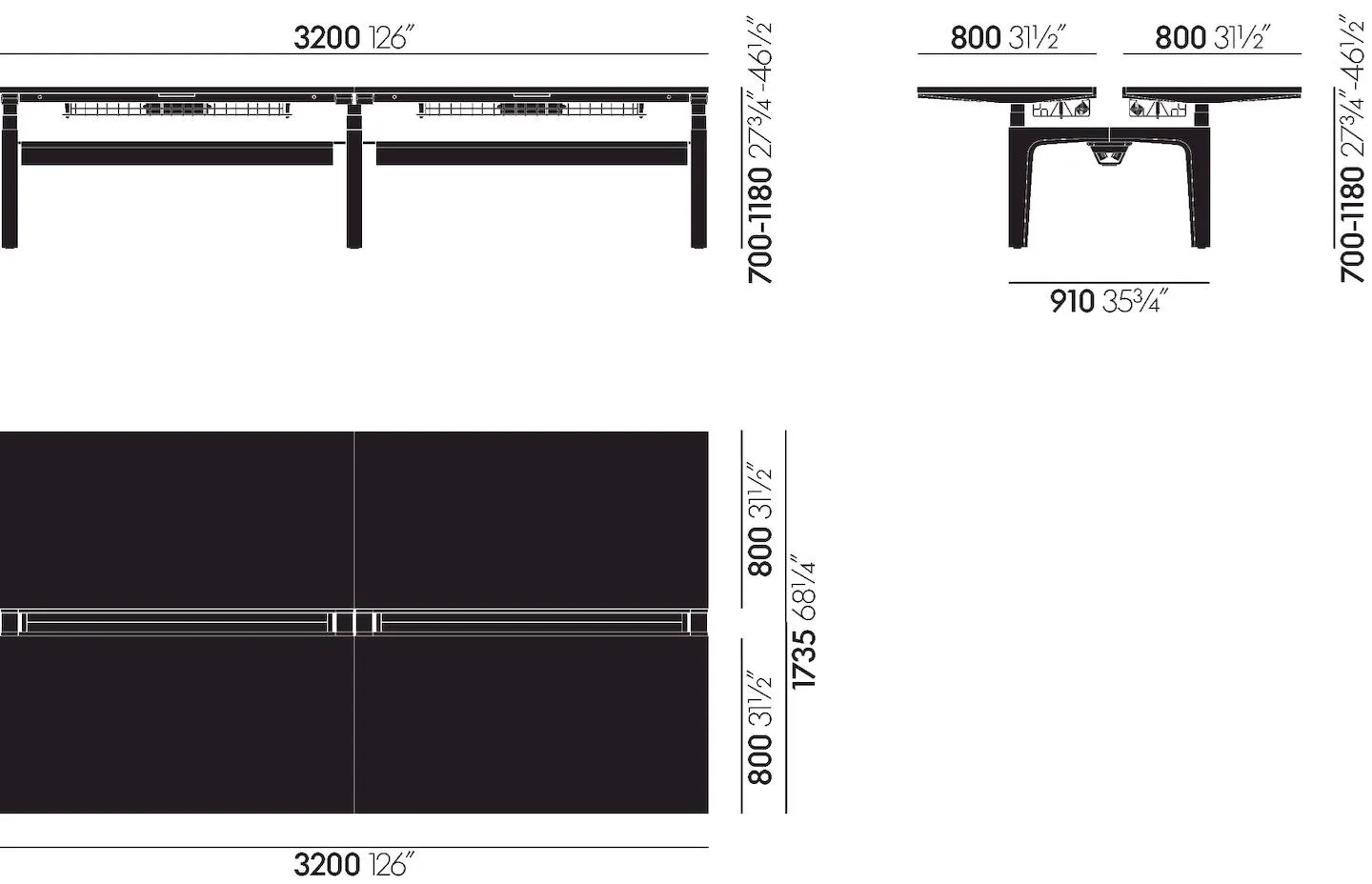 The authentic industrial aesthetic of CDS conveys the character of a system founded on technical solutions. This impression is underscored by its structural details. The most practical approach was taken for each function. Easily accessible power options, cable baskets and cable guides keep work areas tidy, while privacy is ensured by the screens and the cleverly designed roller blinds, which are automatically supported by the higher of the table tops when raising or lowering the tables. In addition, discreet technical rails flush with the work surface can be fitted with desktop monitor and lamp holders, as well as containers and accessories, without the need for any tools.