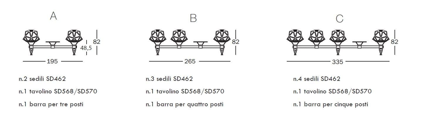 Material: base in die-cast aluminium painted in polyester powder, suitable for floor fixing. Seat in die-cast aluminium treated with sputtered fluorinated titanium and painted in polyester powder. Connector bar in anodized aluminium. Small table in HPL. Seating system available for three, four or five seats.