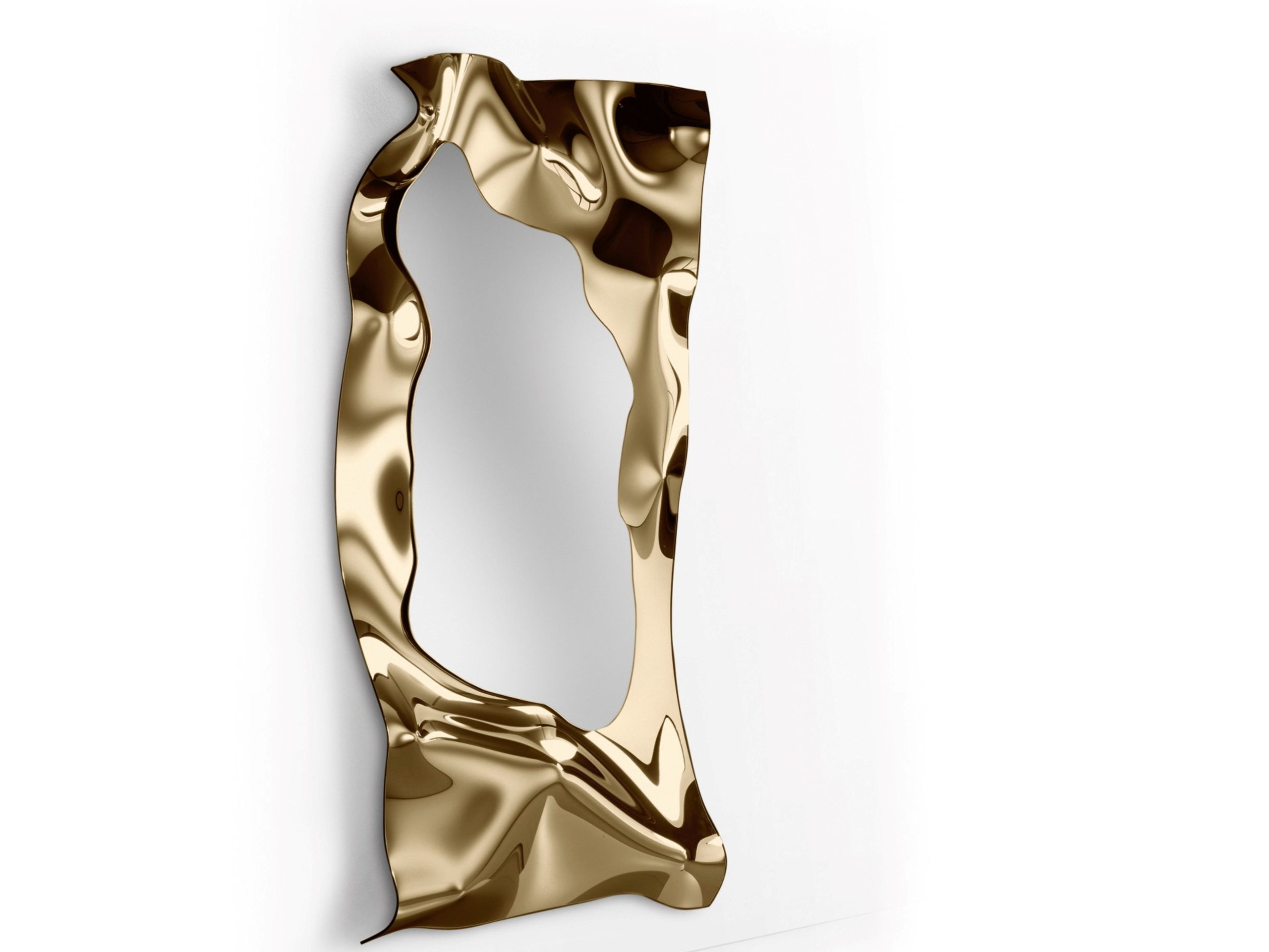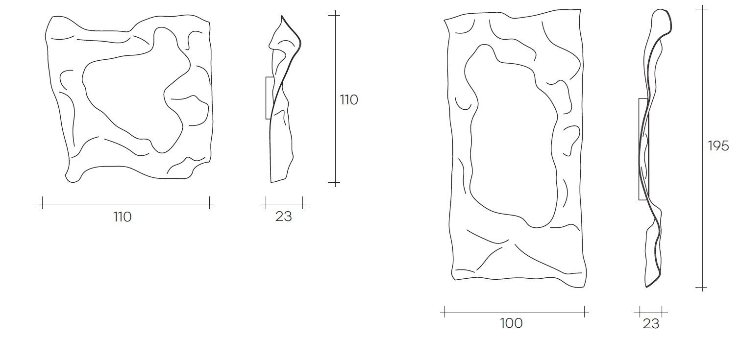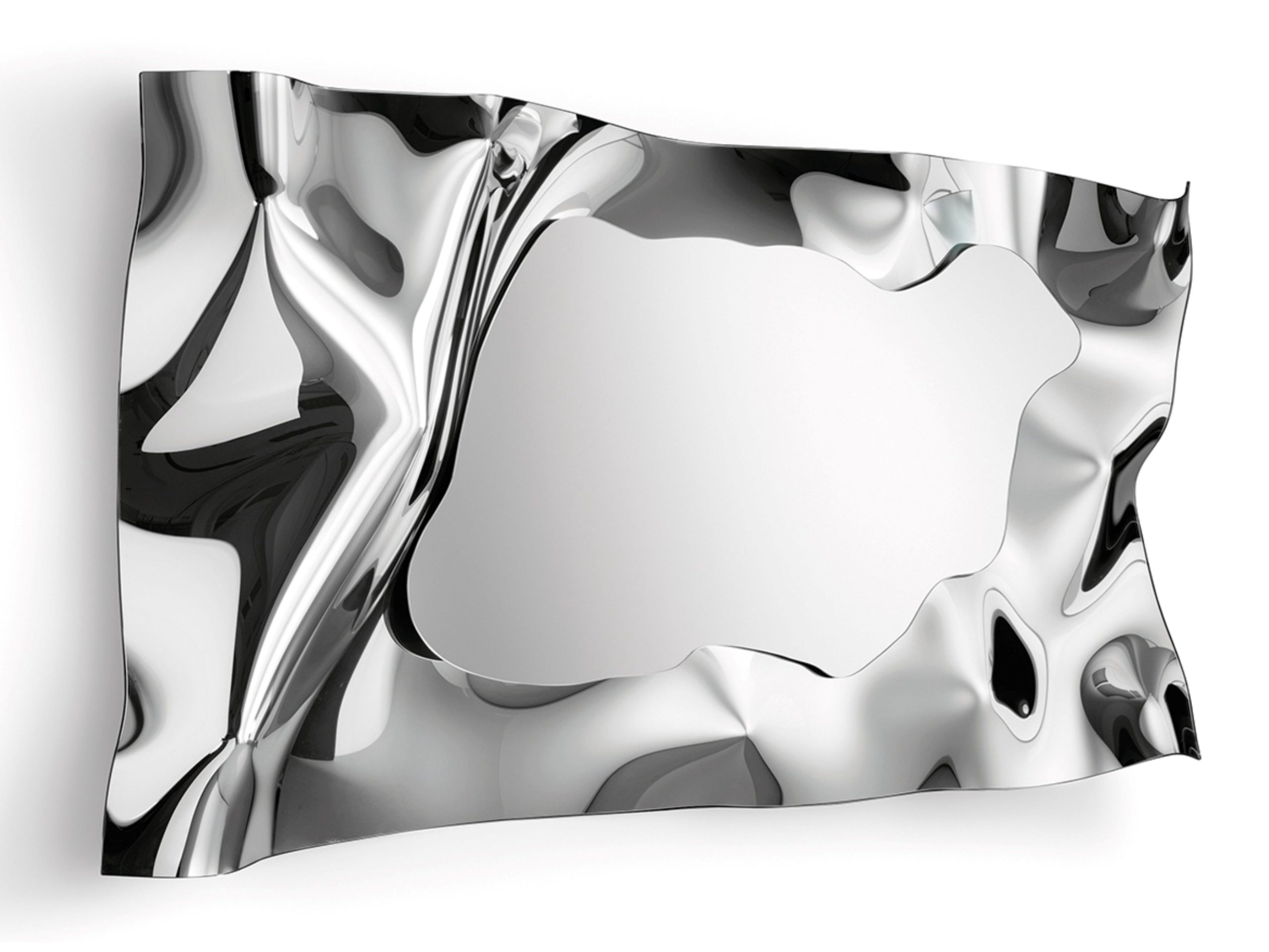 Christine is a wall mirror in 6 mm high temperature fused glass, back-silvered. 5 mm flat mirror. Rear frame in painted metal. Can be hung in various positions.