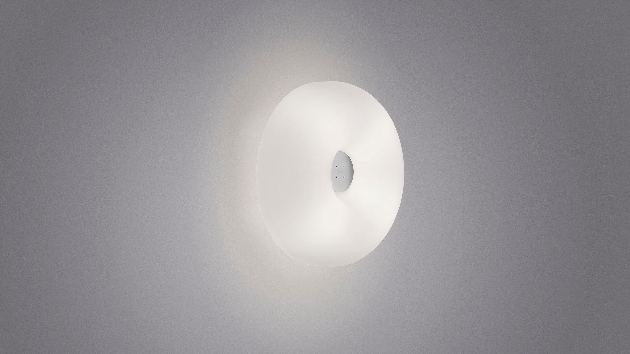 Circus is a wall light made of blown glass, nickelplated or coated metal.
