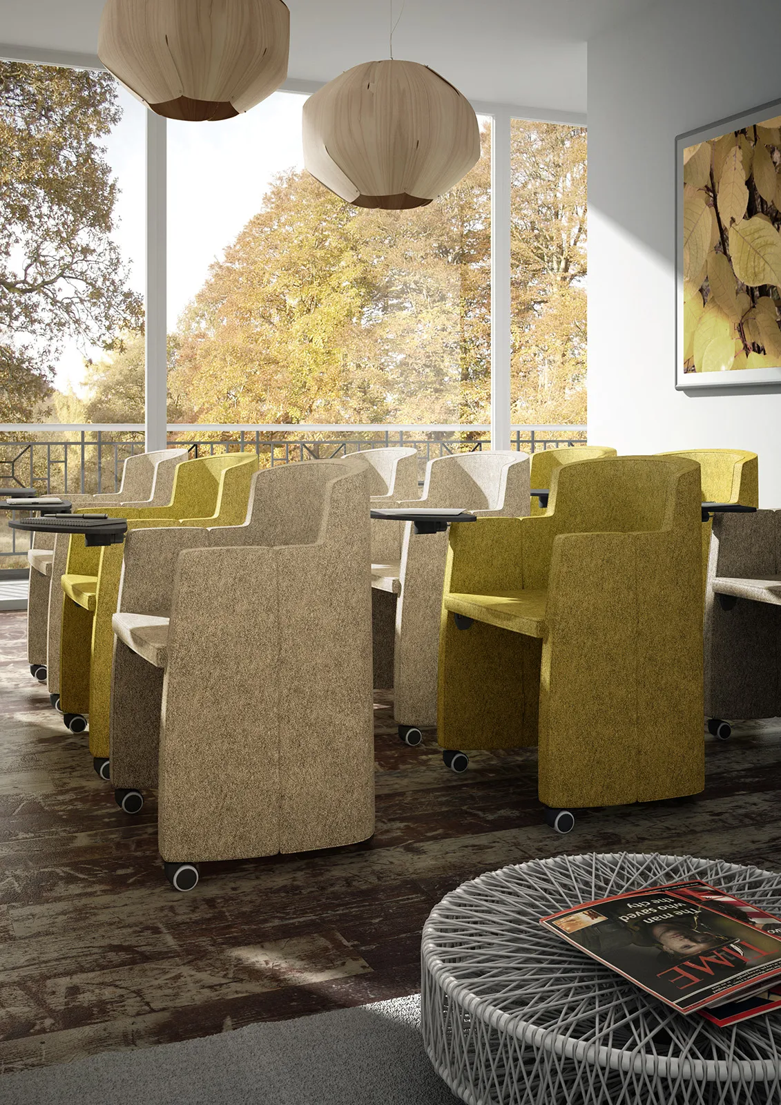 Tub chairs like Clac are a typical example of reception seating that can fit a variety of different receptions, entrances, halls and lobby settings. Clac is a reception tub seating solution to decorate a seating area with greater flexibility compared with sofas; it is lightweight and can be easily moved around. Clac can also be used in conference, break out and occasional settings for waiting areas. Clac can be folded on itself with a few simple movements at the end of meetings, training or conference time and be moved and stored in another room.