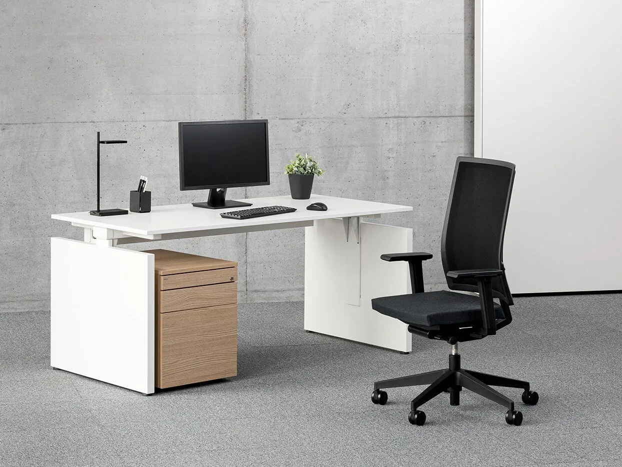 A sturdy desk with clean and understated lines. The distinctive feature of CLASSIC is the seemingly floating tabletop. The desk is solid and exudes confidence. Furthermore, a personal statement can be made by choosing different finishes and colors. When combined with veneer wood for exemple, it creates a stylish atmosphere in the leadership area.