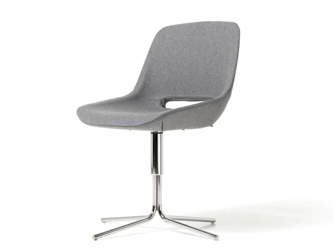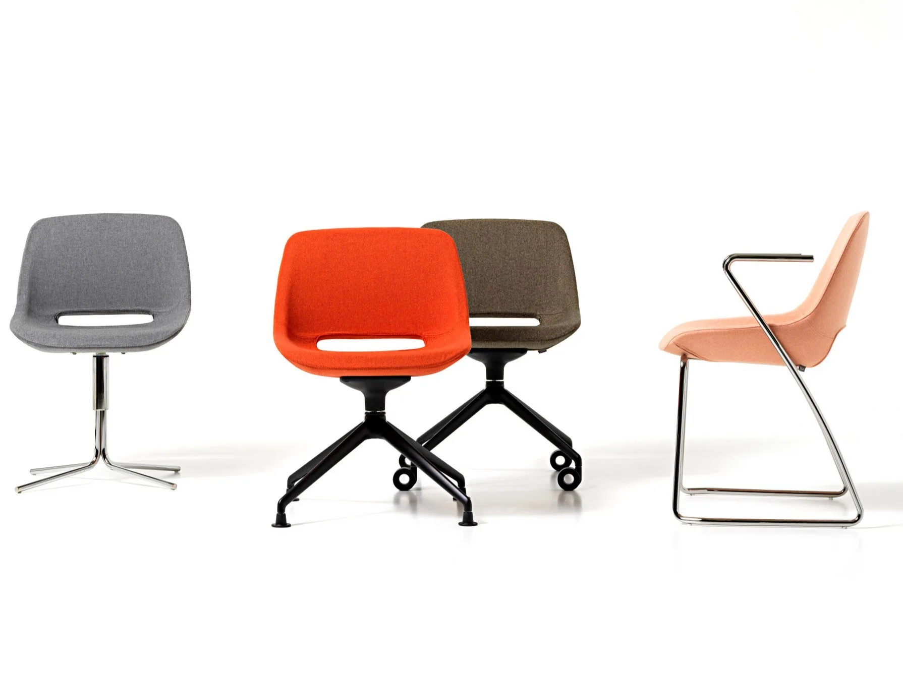 The sweetness of its forms follows through into the optional chromed armrests, the curves of which flow uninterruptedly around the chair. Harmonious and elegant, Clea is also available in the version CLEA PLUS, an armchair that it is characterised by its rounded shape thanks to its distinctive armrests.