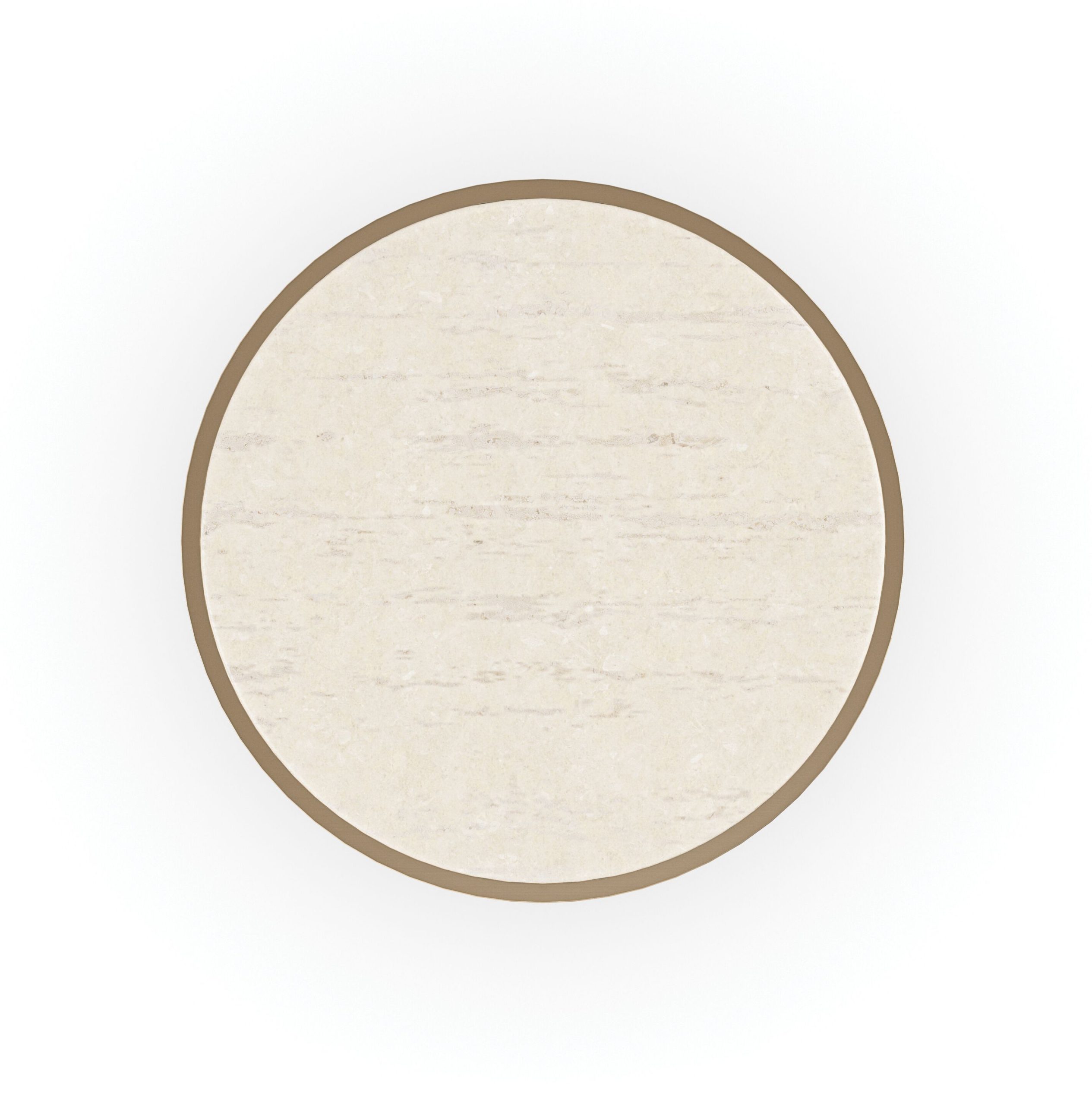 Contrast simplistic shape makes a surprisingly sophisticated statement in an elemental mix of metal and stone. This pillar-like spot table is topped in a luxe yet durable Creme Travertine stone, inset into a sleek metal base finished in Lucent Bronze. Perfect for keeping beverages and books in close reach.