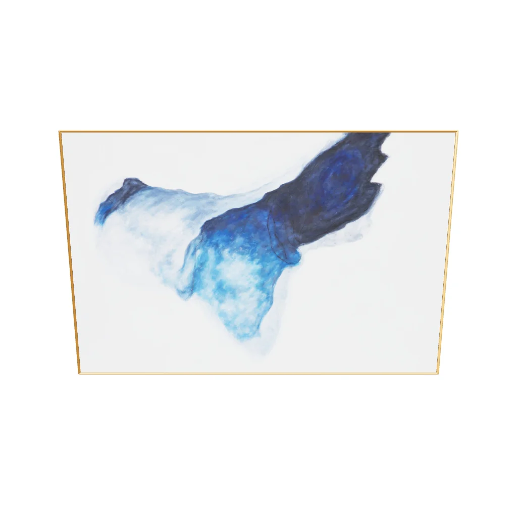 Purposeful brush strokes amalgamate into varying pools of cool blue with this mesmerizing painting. Completed with a gold floater frame. Each artwork is hand-painted and will feature slight variations that make every piece unique.
