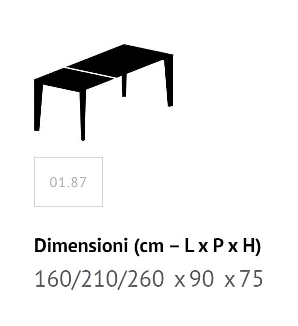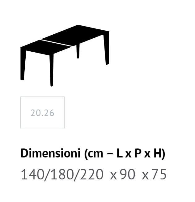 20.26: 140/180/220 x 90 x H. 75 cm ,20.27: 190/240/290 x 100 x H. 75 cm ,01.87: 160/210/260 x 90 x H. 75 cm ,01.80: 120/170 x 80 x H. 75 cm |