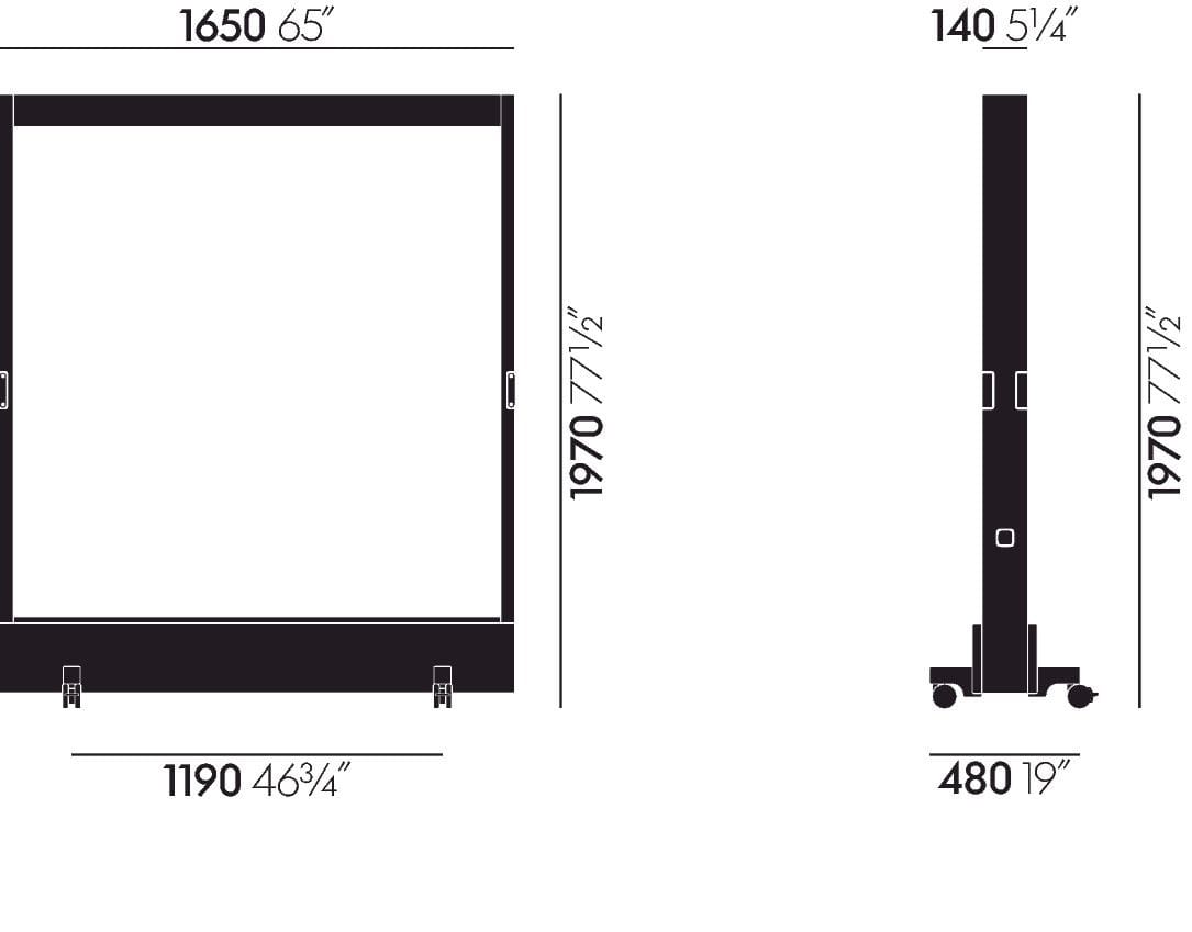 Clad with solid wood panels, the base of the Dancing Wall carries sufficient weight to be extremely stable despite the short length of the lateral castor extensions, while remaining easy to move around.