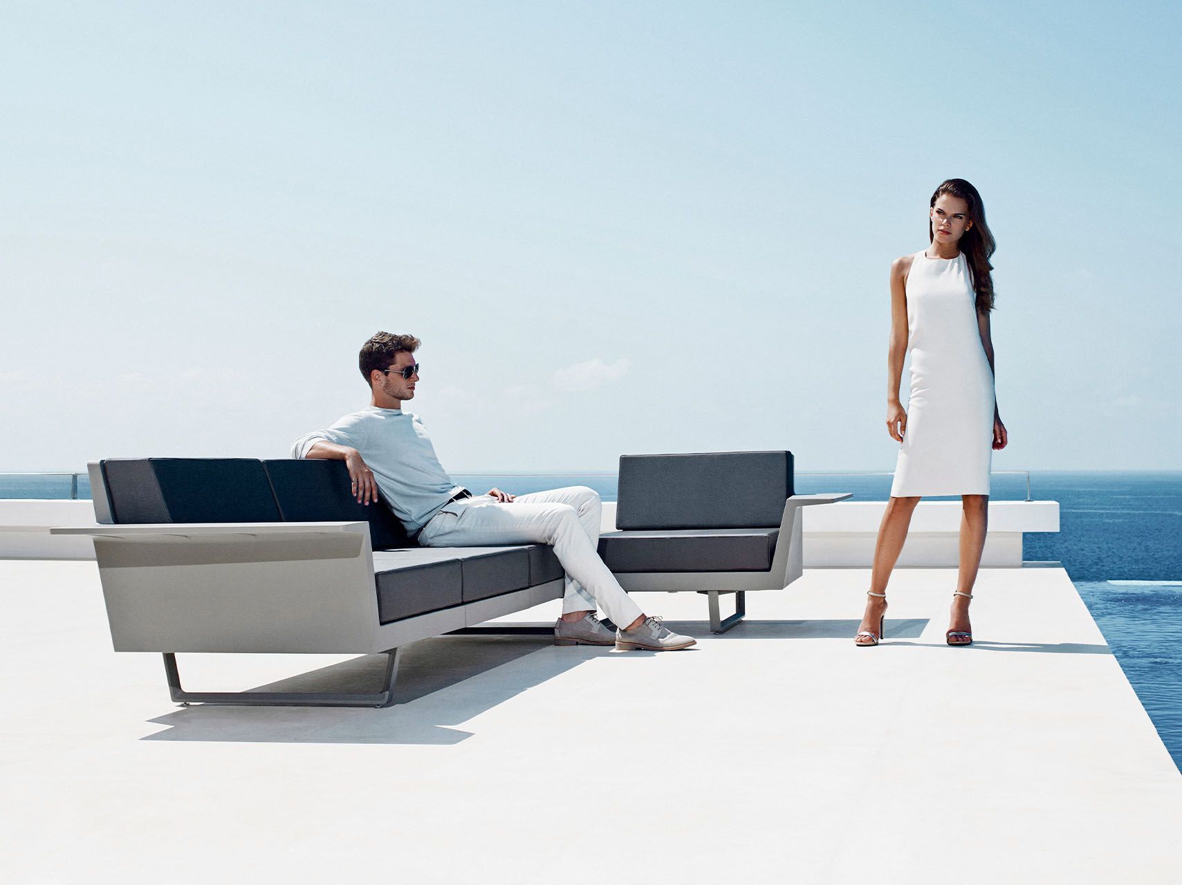 The DELTA furniture design collection, designed by Jorge Pensi for Vondom. Is made to fit in with exterior or interior contemporary spaces. The goal of the DELTA chair was to create a timeless product that constantly seeks to strike a balance between realism and surrealism – matter and antimatter, abstraction and emotion. The goal was to maximize emotions while minimizing resources, questioning the common logic of something new. This same objective is repeated in the other components of this furniture design collection: the tables and the modular sofa.