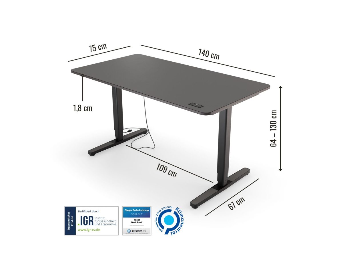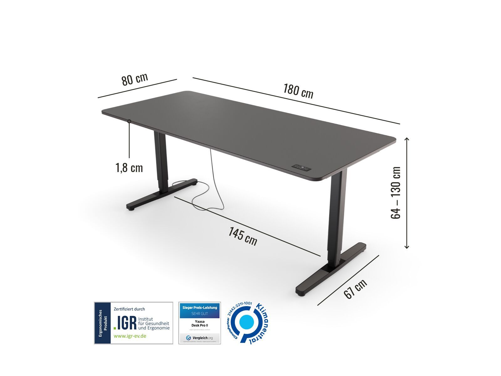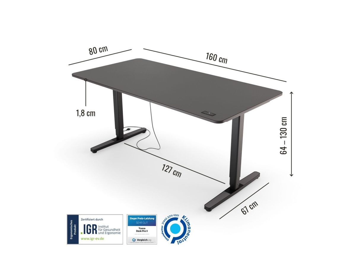 Desk frame: made of powder-coated steel with aluminum feet incl. 4 leveling glides with 10 mm thread