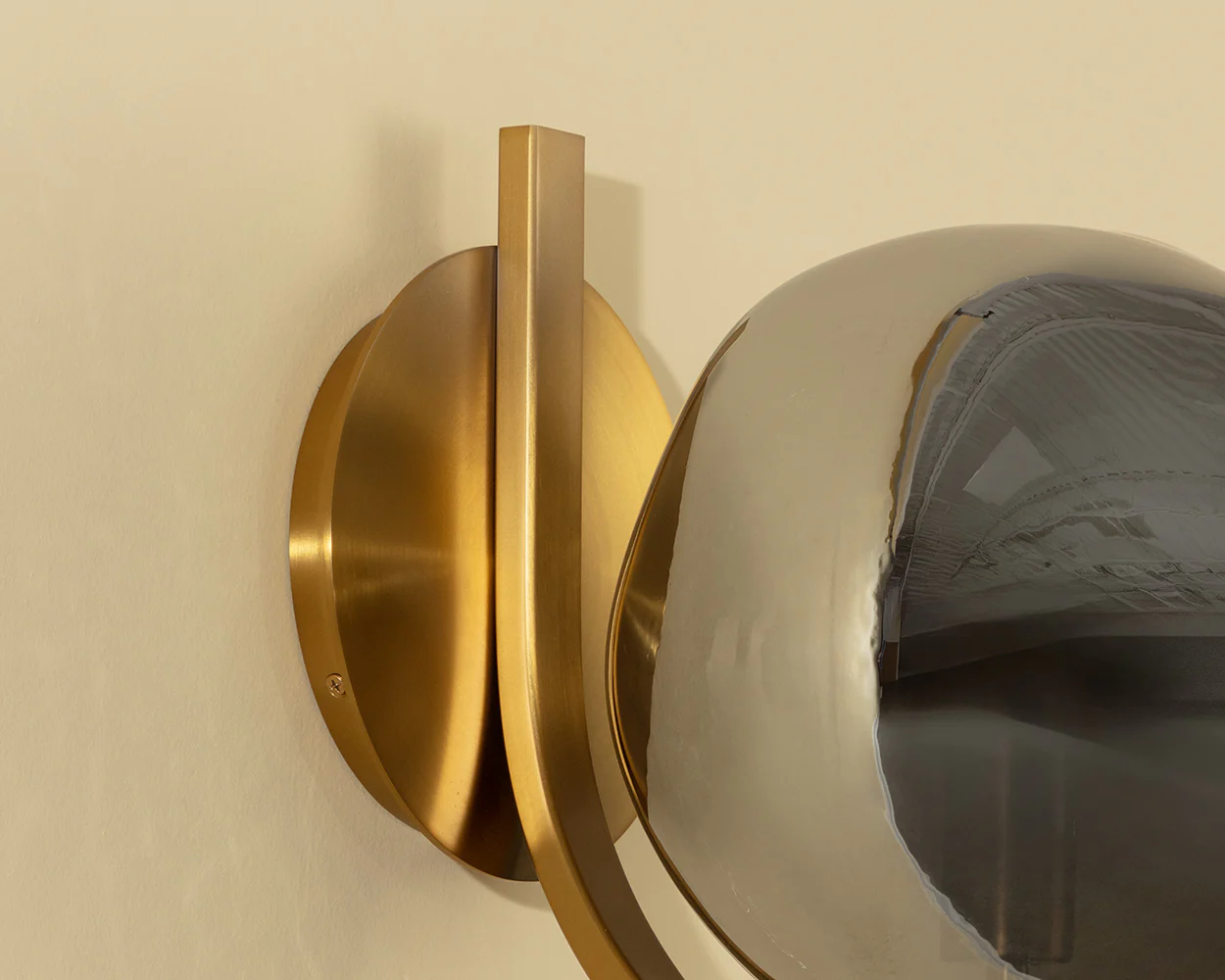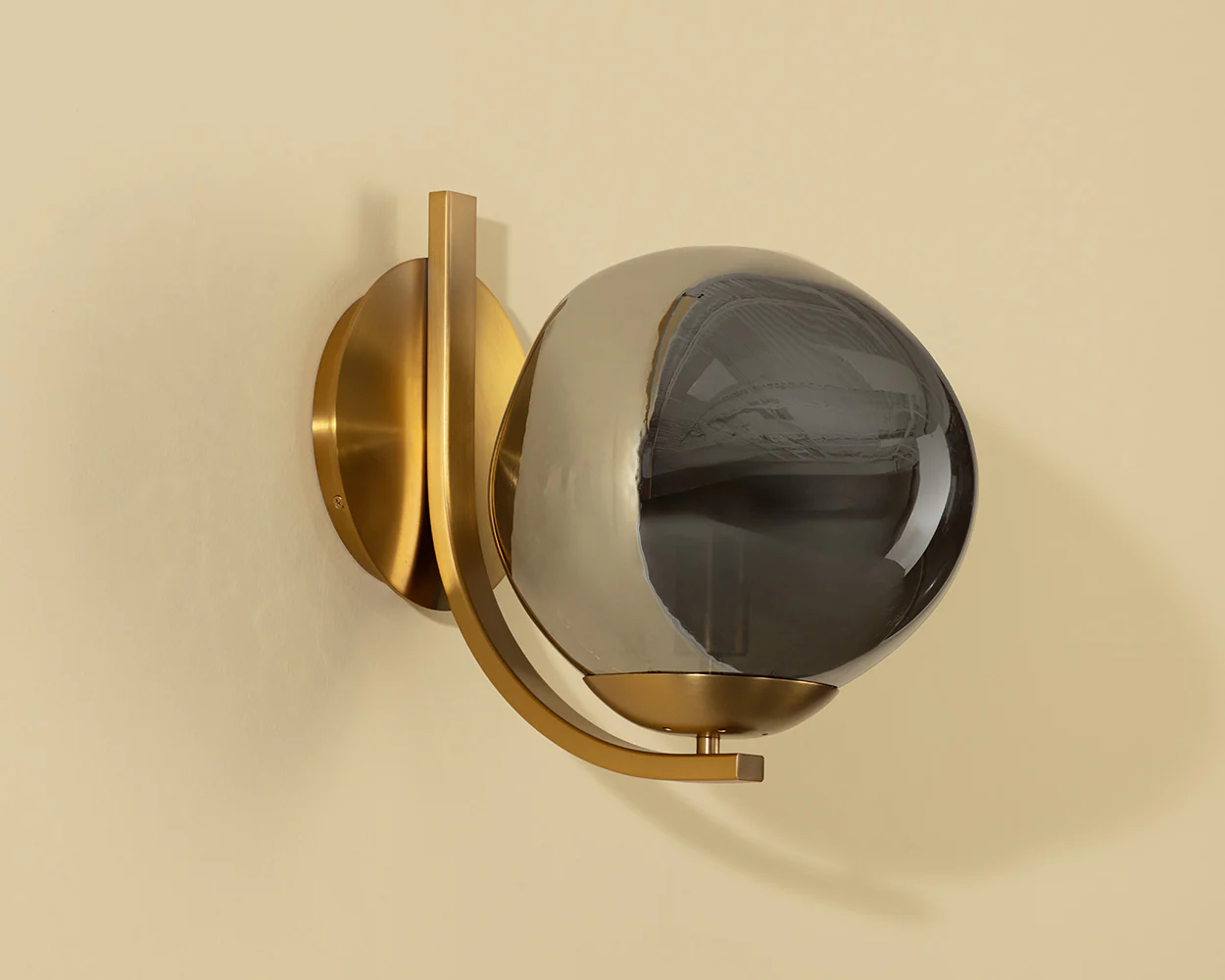 The Dionis Chandelier combines the refined look of hand-blown glass with contemporary appeal. Affixed to a brushed gold iron fixture is a large glass globe that is artfully displayed to produce a lustrous glow. Features & Benefits Smoked glass globe is crafted to mimic the beauty of handblown glass. Iron frame has an elegant brushed gold finish.