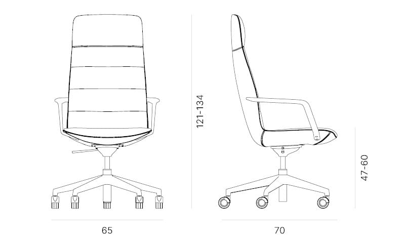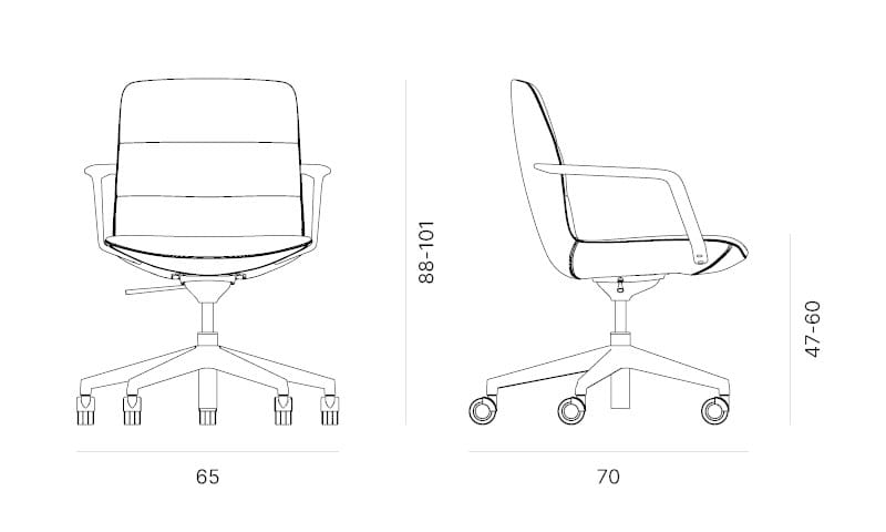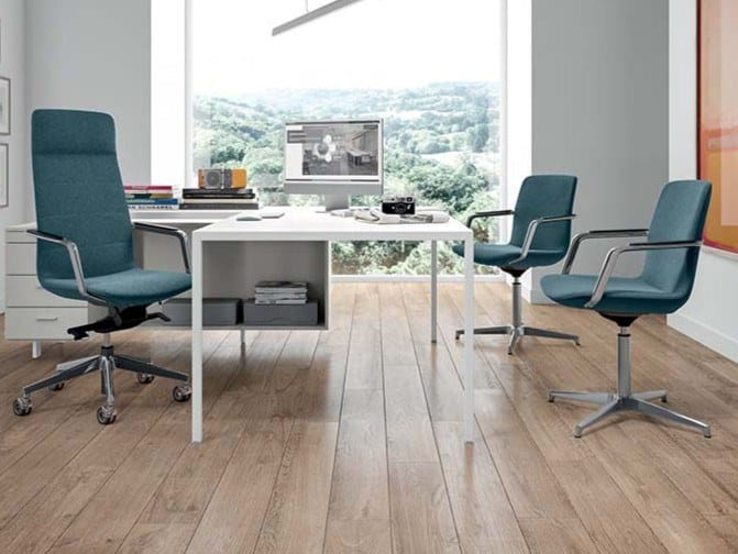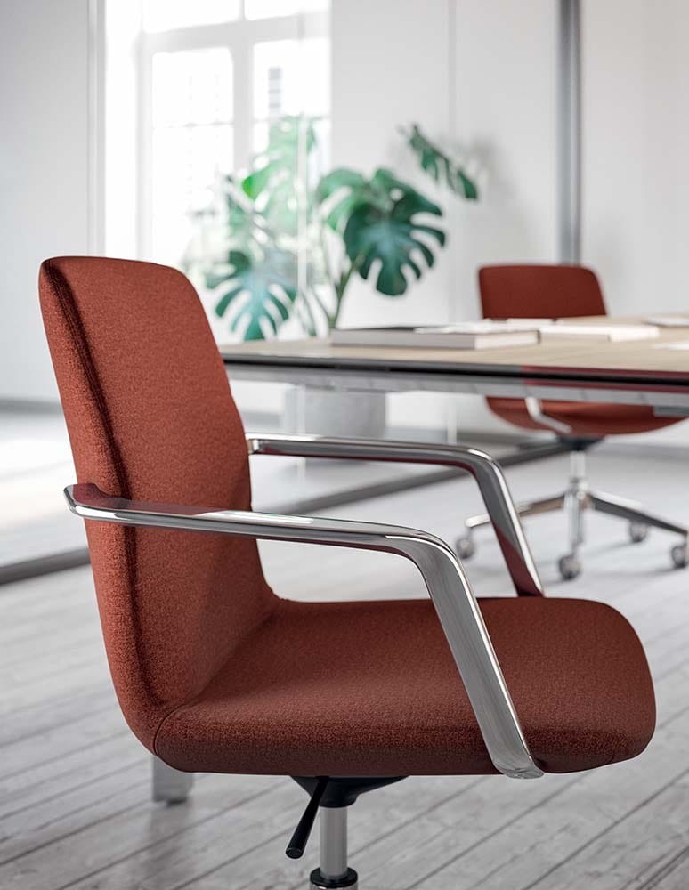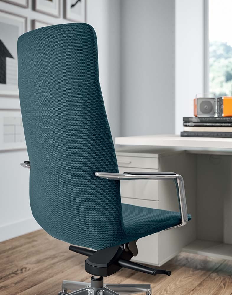 Disis is available in three versions: tall with a headrest, low with a swivel base, and a visitor’s model. The tall seat version of Disis is perfect paired with an executive desk: its ergonomic and soft back, upholstered with expanded cold-foam polyurethane and aluminium arms, which can be leather-covered, blend seamlessly in with the structure. The version for visitors makes a welcome addition to any meeting room, enveloping guests in light and elegant comfort.