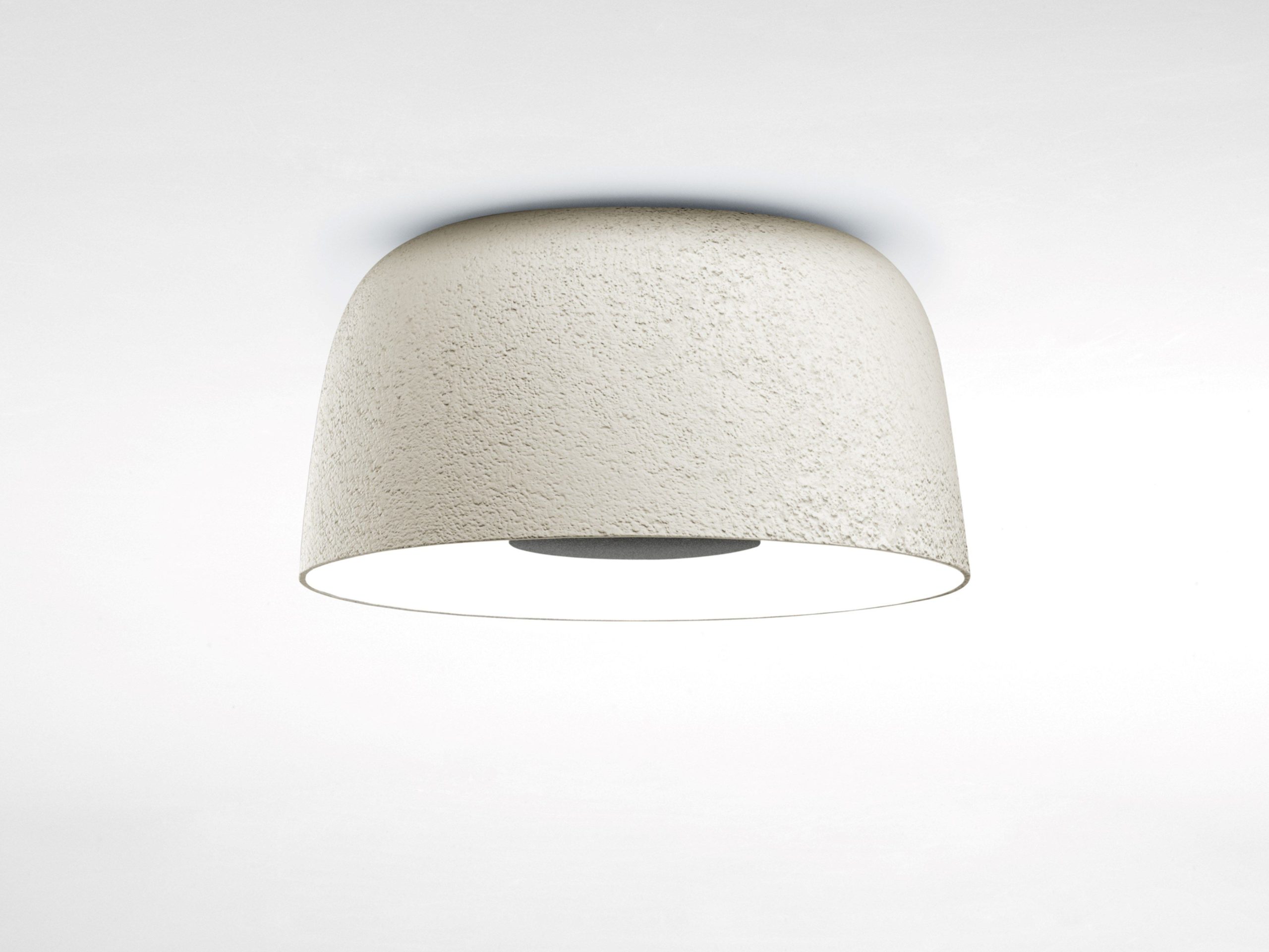 DJEMBÉ C65.35/C42.21 is a LED polyethylene ceiling light. The Djembé collection is designed for repetition, creating musical compositions of light on the ceiling. A bell-shaped ceiling fixture with an exposed interior, Djembé is available in a numerous sizes and bright, airy colors that can be used individually or combined to create a brilliant statement piece.Using a rotomolding technique allowed the designer, Joan Gaspar, to design a fixture with vastly different interiors and exteriors: its outside recalls the texture of a stone, giving off a perception of great weight, emphasized by its volume. In the spacious interior you’ll find a smooth, white space perfect for the reflection of light. Djembé is a lamp designed for use in public spaces that seeks to bring beauty and an unbeatable quality of light. Faced with the challenge of lighting very large spaces, the Djembé collection is growing in every sense of the word, with more sizes and formats. The new ceiling version is over one metre in diameter, but features the same finishes as the rest of the collection. It manages to illuminate using a skylight effect, with its inner white dome boosting the light to yield wonderful lighting. Its lighting performance fits perfectly in contract spaces with a design that is functional and fascinating.