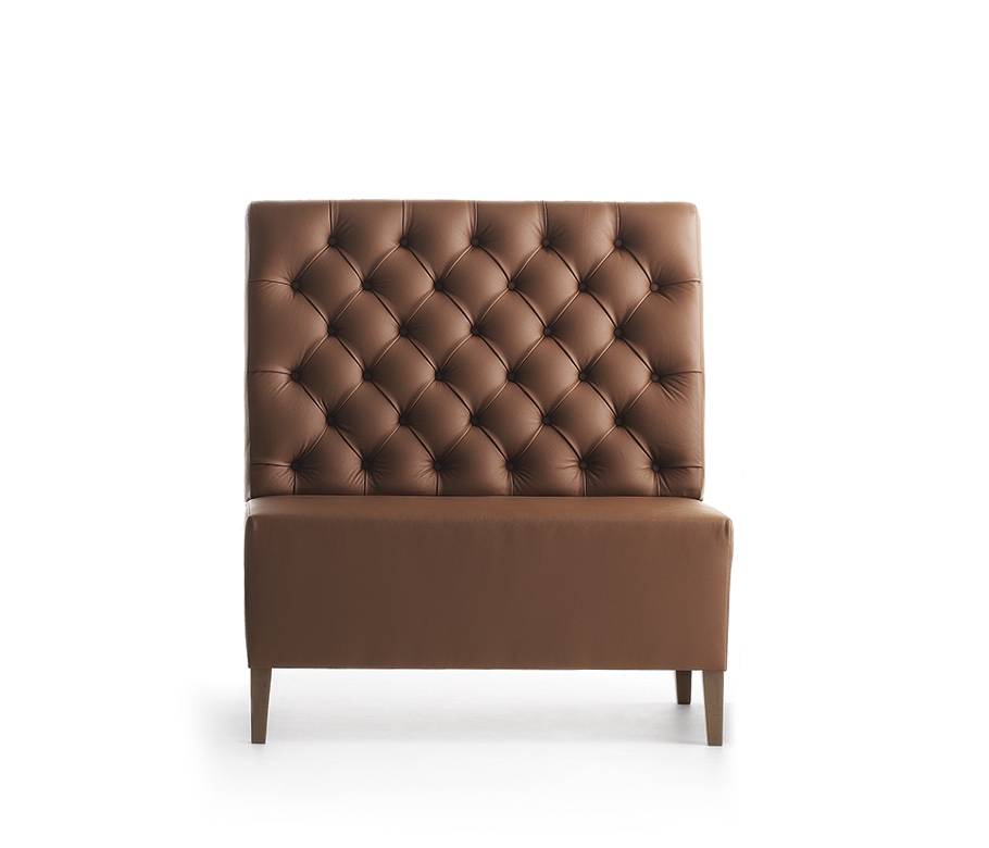 The Dothan bench features plush foam upholstery over a boxed frame, creating a comfortable spot to relax while enjoying a view of your surroundings. Elegantly finished with wood veneer end panels that flow seamlessly into solid wood legs, this bench adds warmth and character to any space. Available in standard finishes or COM.
