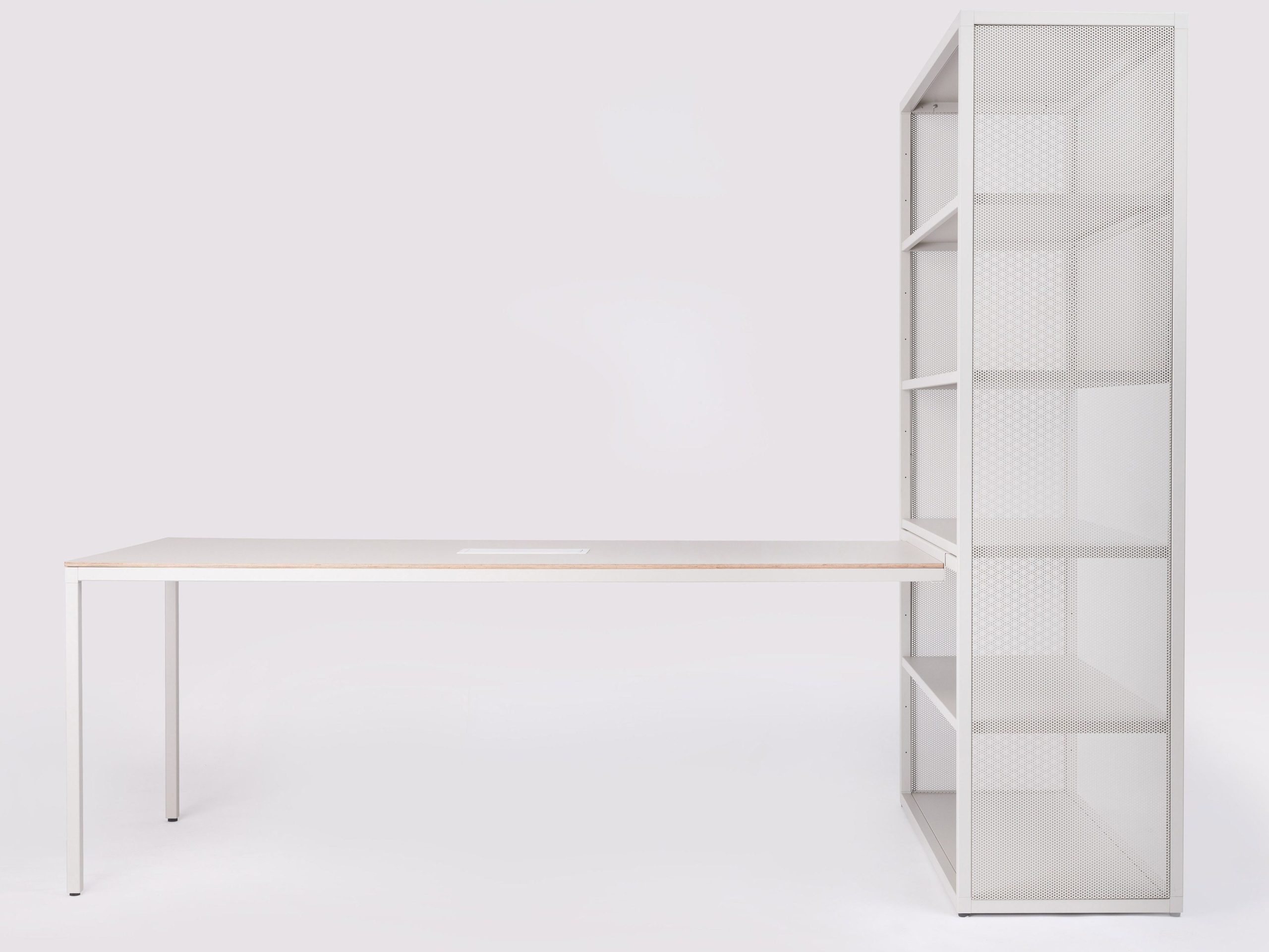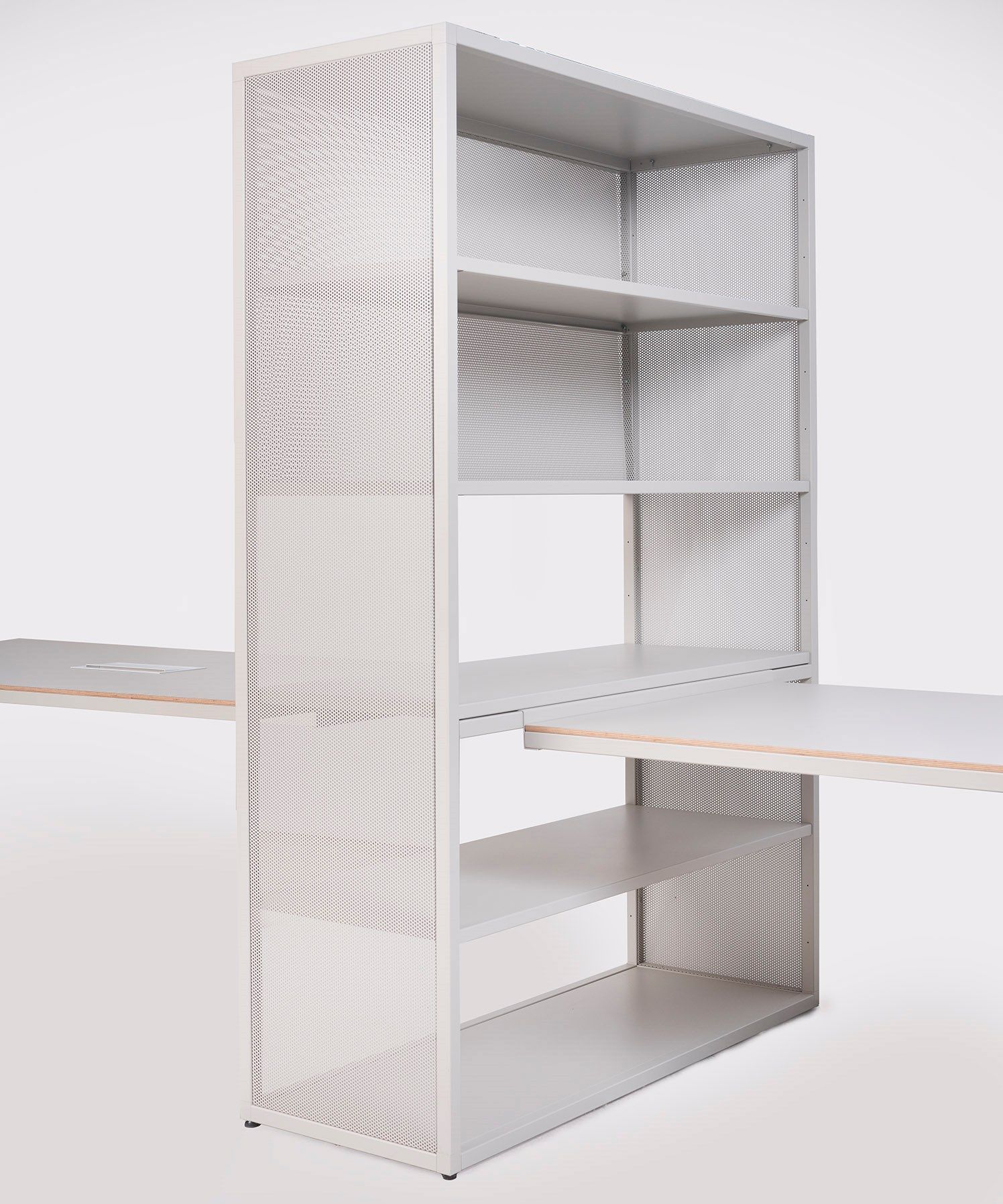DRY, the most architectural basic line in the catalogue, has led to the creation of shelves with the same sober style, whose modular construction allows an infinite number of combinations. With a steel structure, it can be completed with modules with doors, drawers, castors and even perforated panels. Apart from steel shelves, Ondarreta also offers alternative shelves in birch plywood.