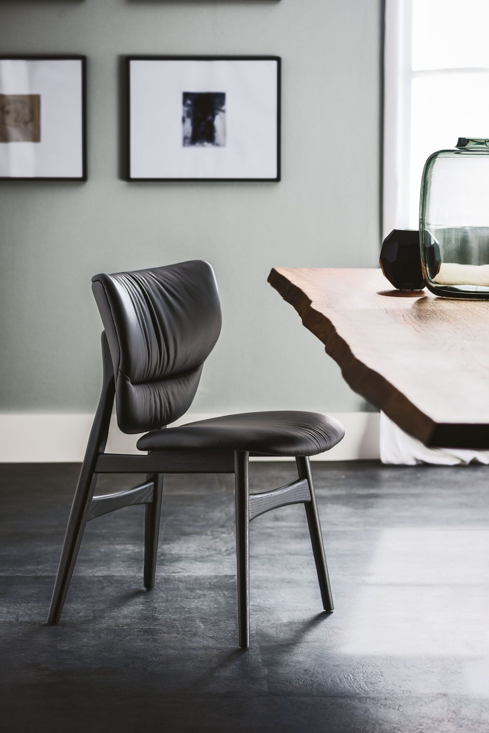DUMBO is a chair with frame in Canaletto walnut stained ashwood (frNC), burned oak stained ashwood (frRB) or open pore matt black (fr73) ashwood. Seat and back upholstered in fabric, synthetic leather or soft leather as per sample card. The cover is not removable. (Stool version is available).