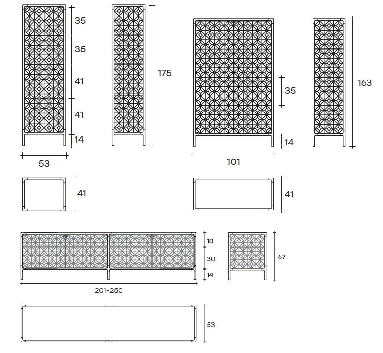 Echo is a showcase with varnished aluminium profiles, available in metalized champagne or vulcan grey finishes. Base in 6 mm thick tempered and back lacquered extralight glass of the same profiles color; relevant glass structure and doors in 6 mm thick extralight, smoke or bronze tempered and fused glass; inner shelves in 8 mm thick extralight tempered glass. The showcase is also available in float (non fused) glass and in semi-reflecting glass. LED lighting system integrated in the structure frontal pillars (optional).