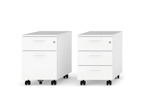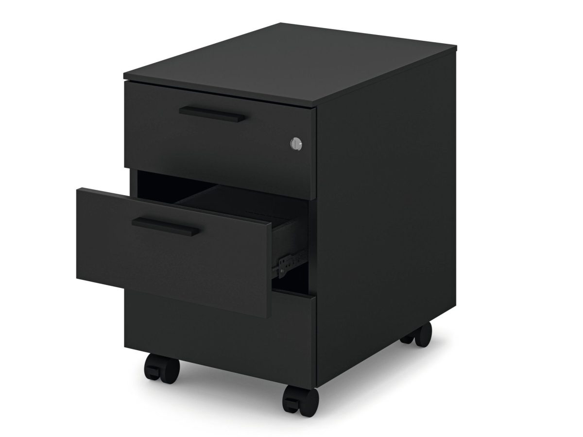 Wooden office drawer unit with wheels and lock.The drawers have the anti-overturning system, the stationery tray and the optional extra lock.