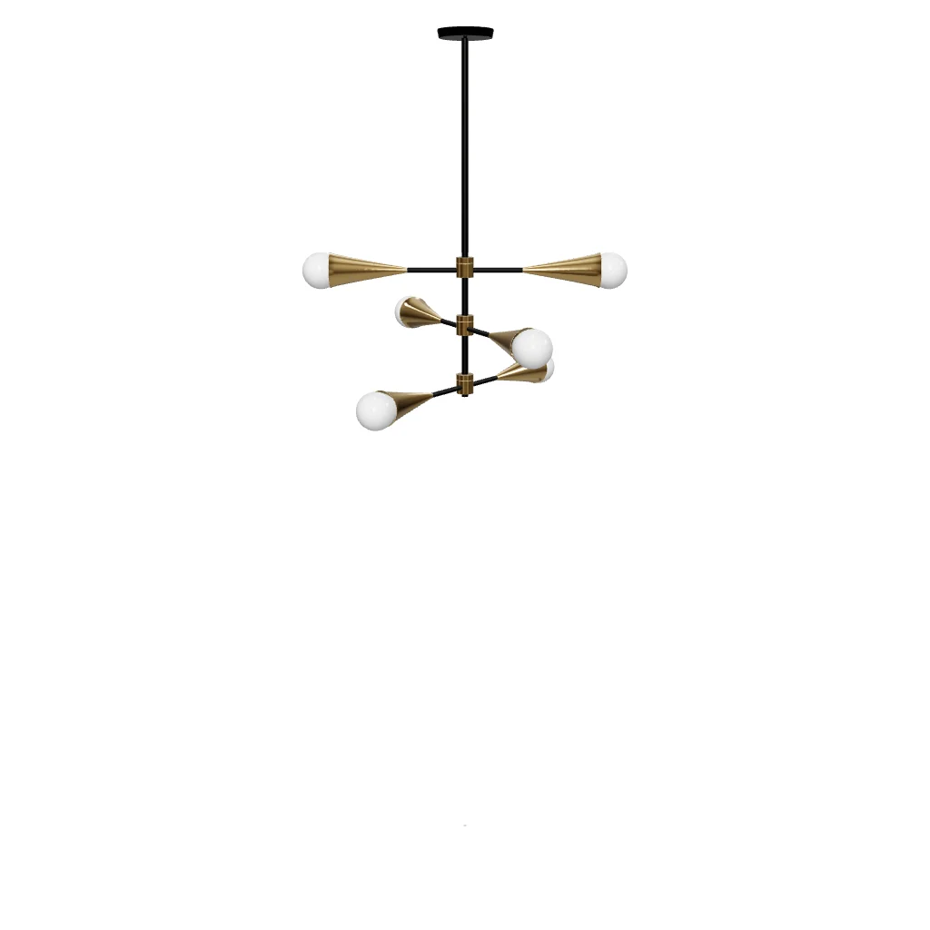 Create intrigue and illumination in living and dining spaces with this modern sputnik-style ceiling light. Features three adjustable arms with 360 degrees horizontal swivel. Crafted from iron with black and brass finishes. Install multiples for a dramatic look. Requires 6 light bulbs and maximum 60 watts each.