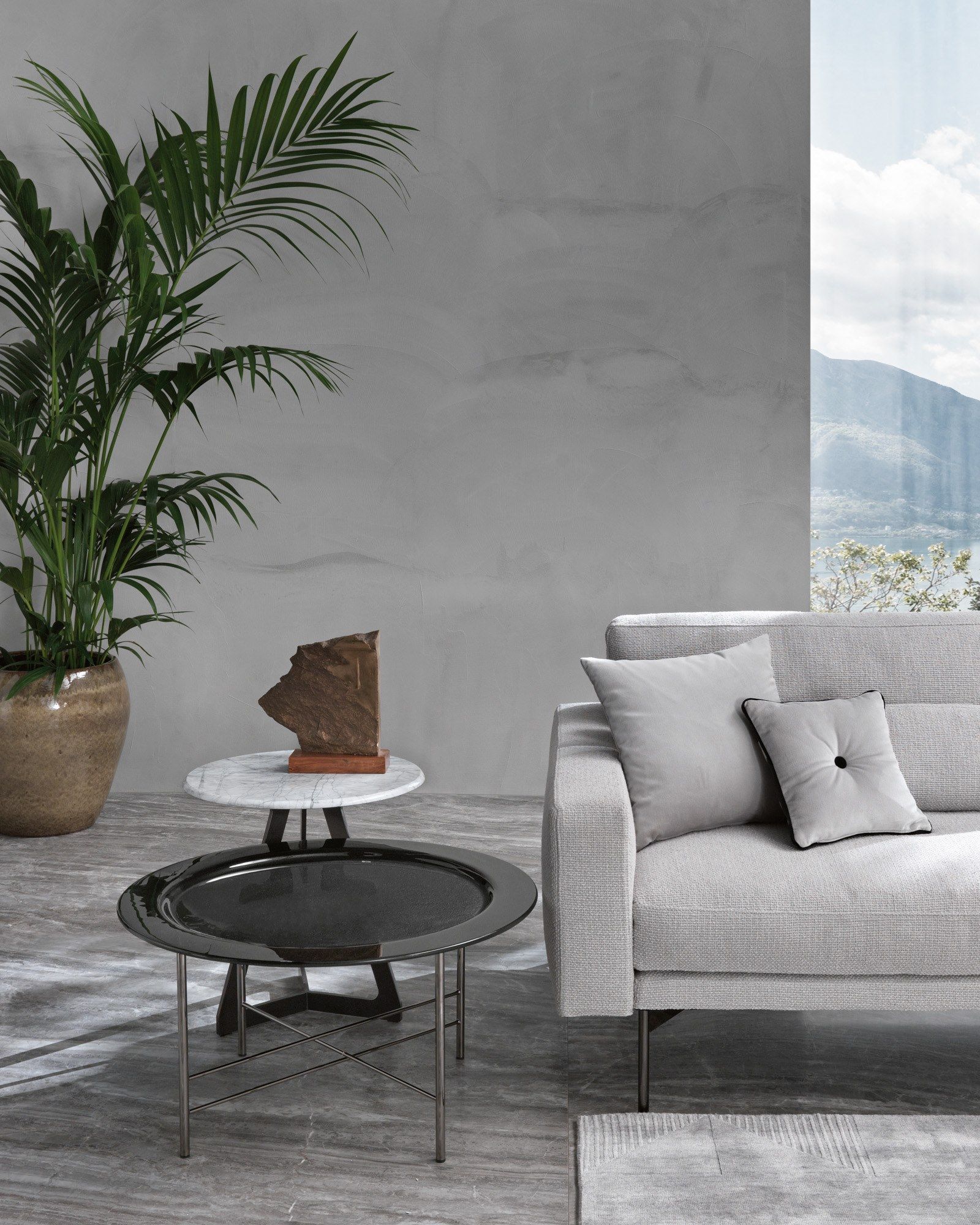 En is a round coffee table with top in 10 mm fused glass, back-lacquered with metallic paints. Metal base, Black Glossy Nickel finish.
