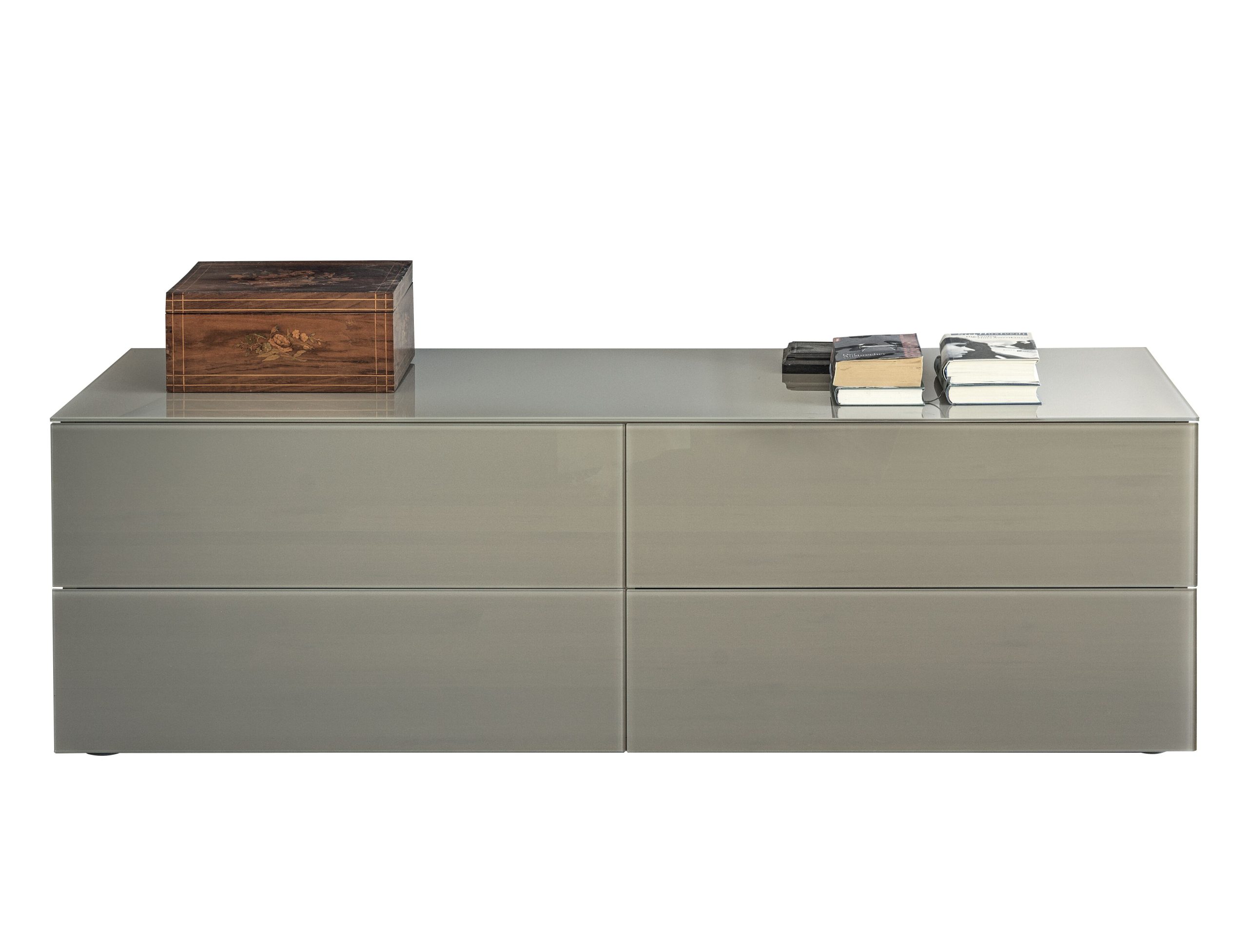ENEA is a storage program, storage unit and tall boy in matt lacquered wood, top and drawer’s frontal panels in gloss lacquered glass.